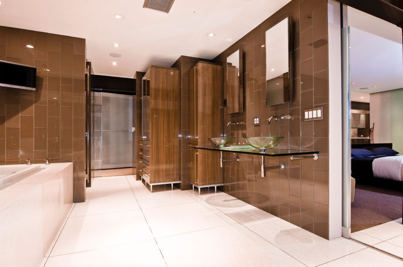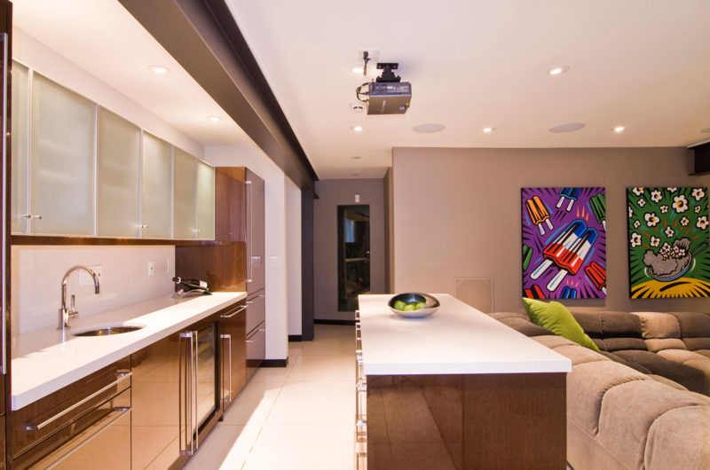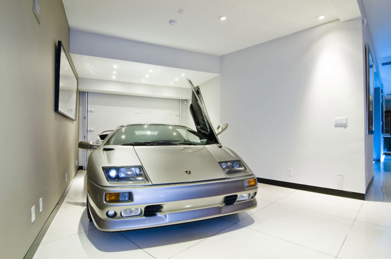 The master suite along with the theater are found downstairs, the entire house being perfected by symmetry, unifying materials and all the comfort a bachelor needs. But how do you feel about parking your car, inside, next to the living room?