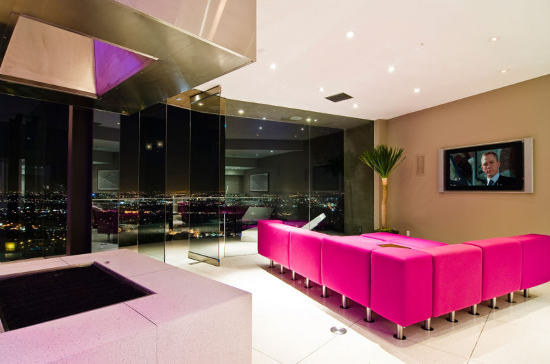 The walls are practically inexistent because, as you can clearly see, there’s glass all around. The effect is even crazier because aside from the fact that you can see the entire city, at night, the interior looks very glamorous.