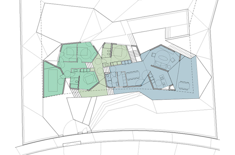 The house boasts 3 distinct volumes that have polyhedral shapes, which means that it looks absolutely unique and eye-catching. The high quality materials used in the construction process involve concrete for the floor structures and the floors themselves, but the hand-made glazed tiles also deserve a mention.