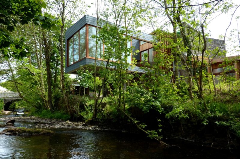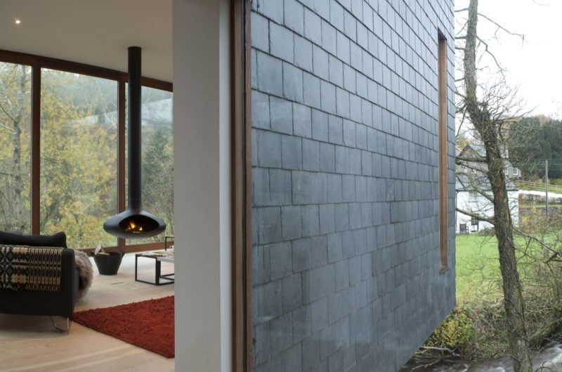 Ty-Hedfan is a house designed by Featherstone Young architects in Brecon, Wales. With a project area of 2400 sq ft, the designer had to include and put in a bright light the unique positioning of this house. It was placed above a river, on the highest place of a valley, with views towards the unique landscape of Brecon Beacons National Park. Two rivers cross the property and the architects figured that this could be the emblem of the new house, naming it Ty-Hedfan which translates to “hovering house”.