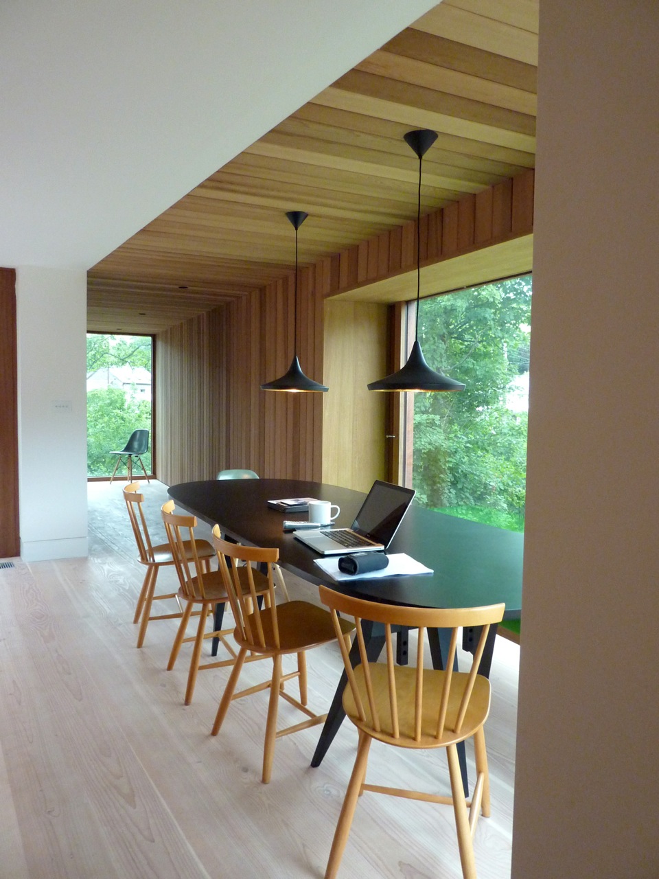The inspiration for this house came from the traditional Welsh homes that had a long form. The architects took that form, mixed it with the characteristics of the land it was set on and filled it up with local materials.