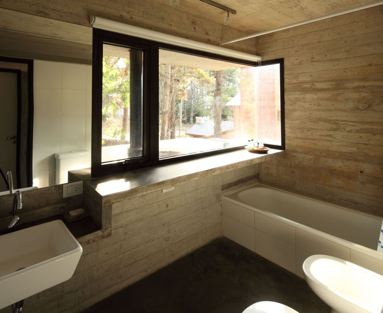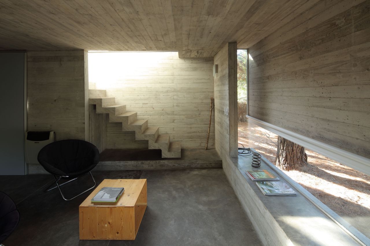 This is a 87-sq-m house built by BAK Architects in the forest region of Mar Azul, Buenos Aires. The terrain in this region is sloping and covered with big pine trees. However, this certain lot has a three meter high slope.