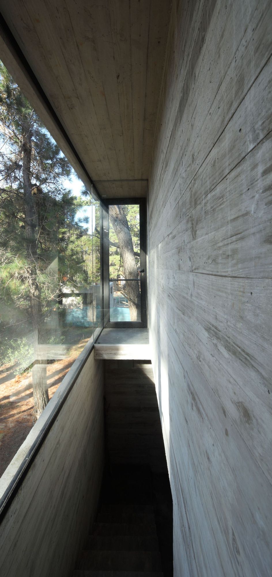 The elements composing the house are glass, wood and exposed concrete. Concrete is the main material, since it is also used for some parts of the furniture.