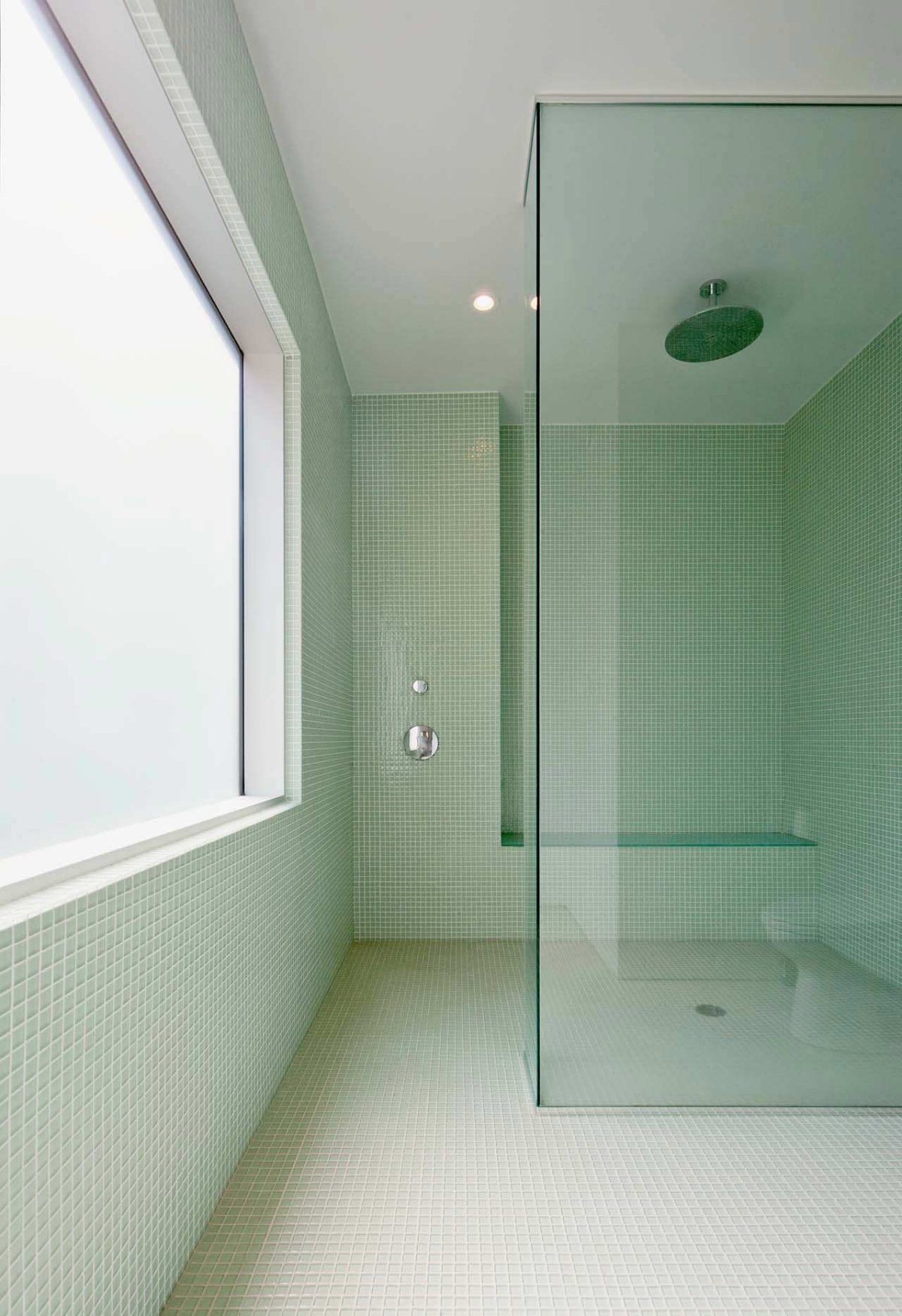 The sloppy landscape was an excuse to hide the garage in the lower part of the house. From the street, the viewer can admire this house with a caved porch and a see-through living. The upper level includes the bedrooms and bathrooms.