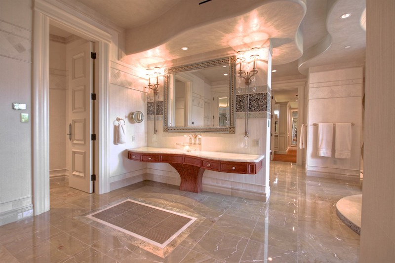 The master bedroom is a sumptuous 3.225 square-foot masterpiece that is unmatched as far as lavishes and comfort are concerned. The grand room flaunts 3.200 square feet and is linked to a commercial elevator for 25 people. The family room is considerably smaller with its 1.750 square feet of space, but it is still very impressive in its own right. Other highlights comprise a library, a lounge, a bar, an exercise room, an indoor shooting range with two lanes and a theater.