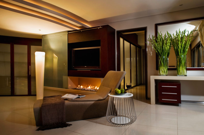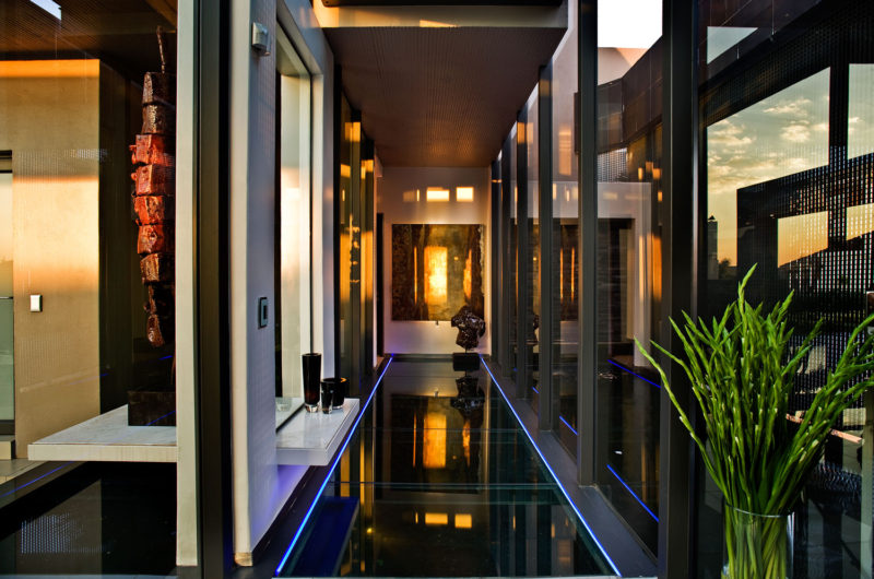 The House Cal located in South Africa is a sleek and stylish home with warm colors and glossy surfaces, designed by Nico van der Meulen.