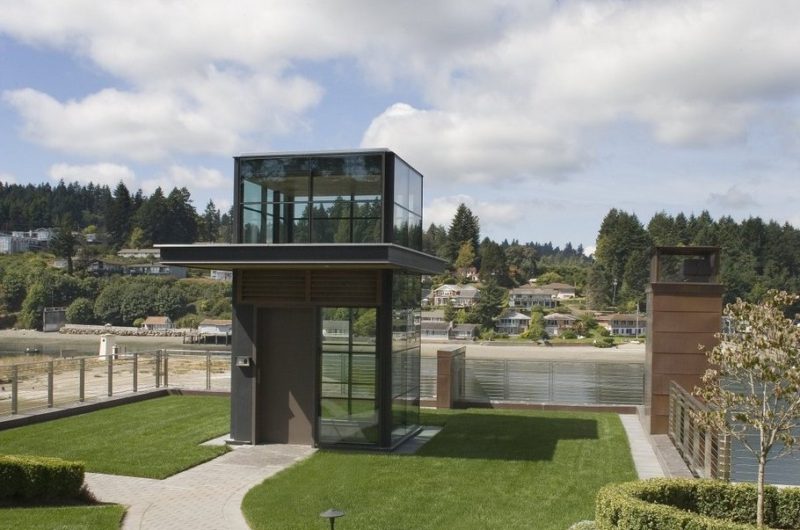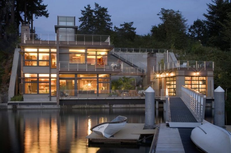 Cliff House is a gorgeous contemporary home designed by Scott Allen, a Bainbridge Island-based architect. It is located in Gig Harbor, Washington, USA, right on the water’s edge. The residence replaced an old boathouse and guesthouse, but its size was limited by a regulatory agreement.