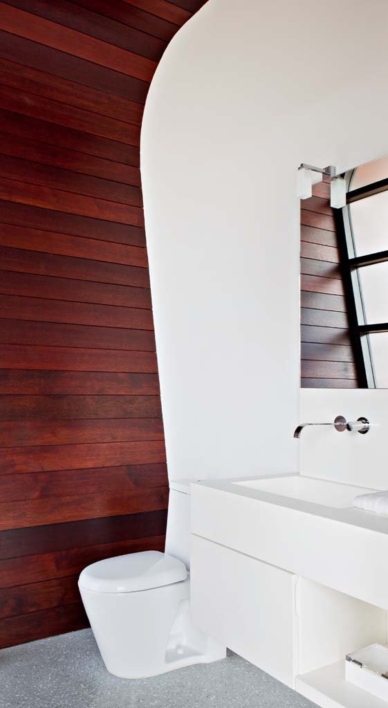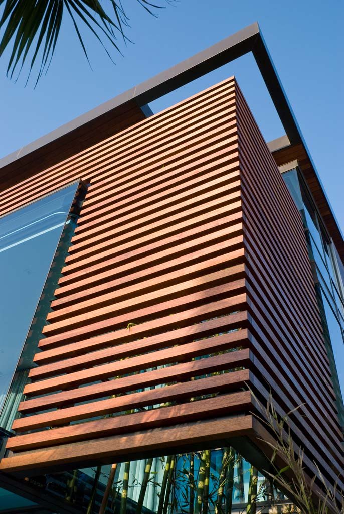 The privacy of the master and the main living spaces is provided by the growing wood slats surrounding the existing bamboo garden which gives the property a Zen like feeling.
