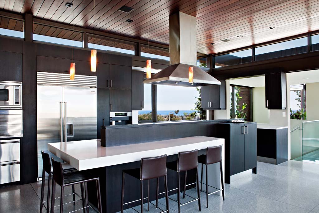 The Ettley Residence is a modern seaside sculpture created by the Californian-based architects Studio 9one2. It is located near the ocean and offers views of the water and over the city.