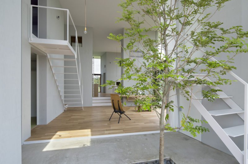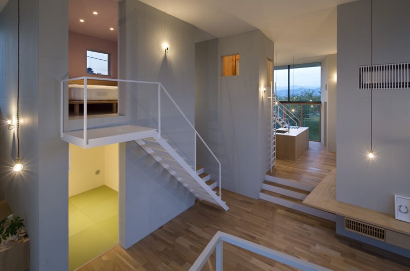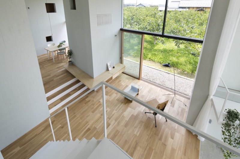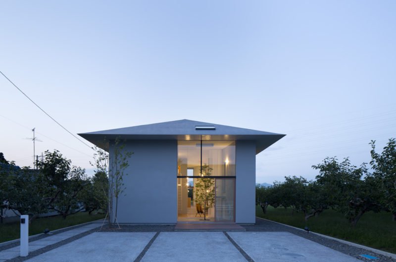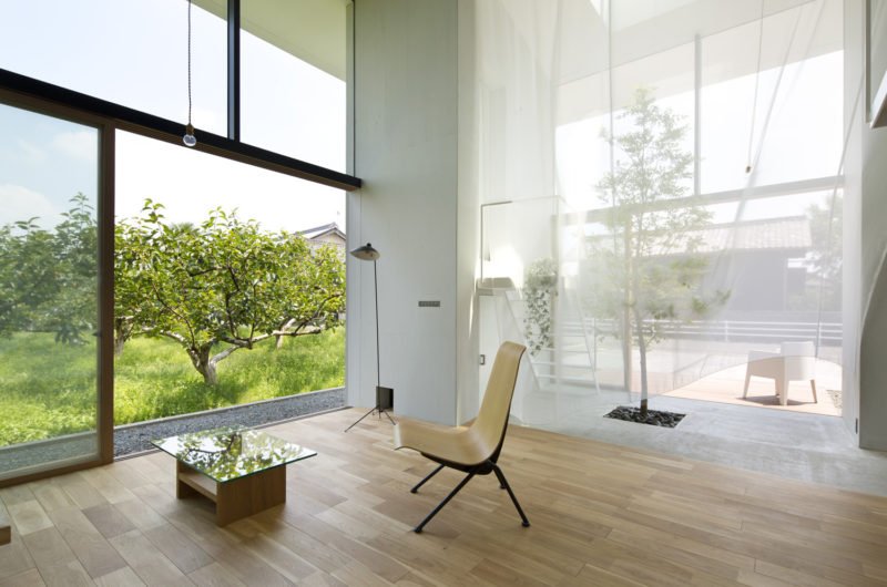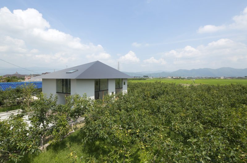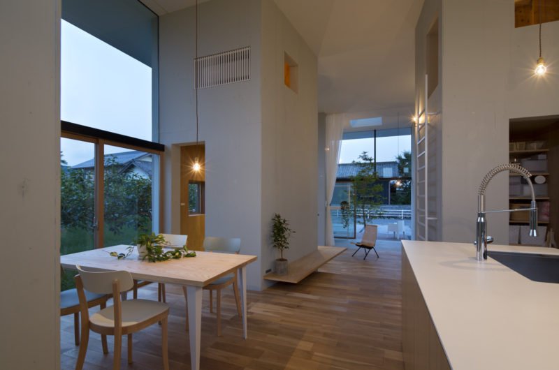 This lovely residence can be found in Ohno, Japan, and it was designed by a company called Airhouse Design Office. It was built on a picturesque site on a Japanese persimmon orchard, and so it is surrounded by numerous examples of natural vegetation that give off a sense of tranquility and privacy. The owner wanted to be able to enjoy wide open spaces as well as high ceilings, which is why the architects opted to go with a layout based on 7 thick columns and a generous rooftop.