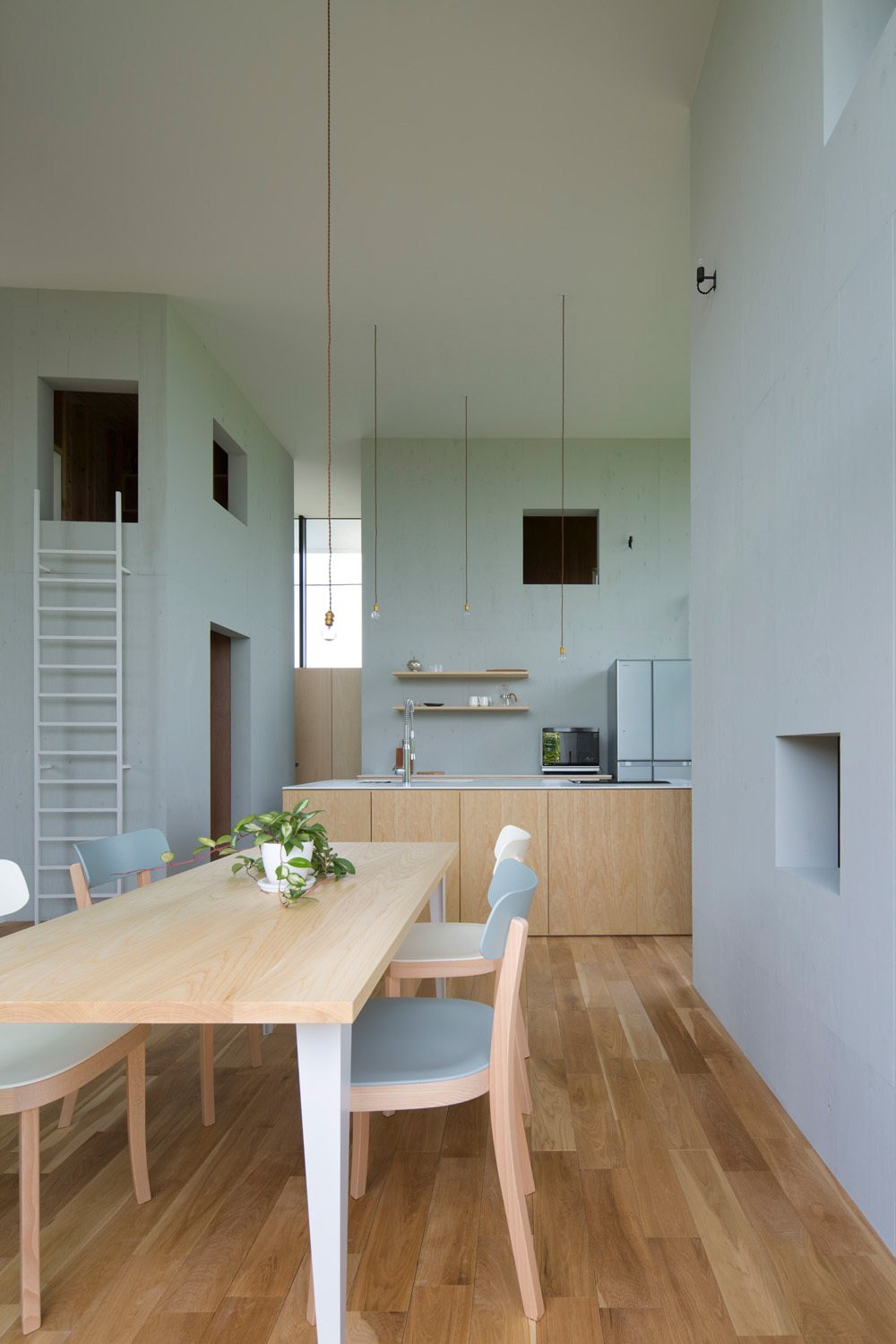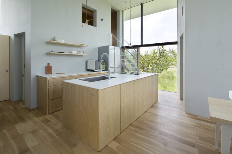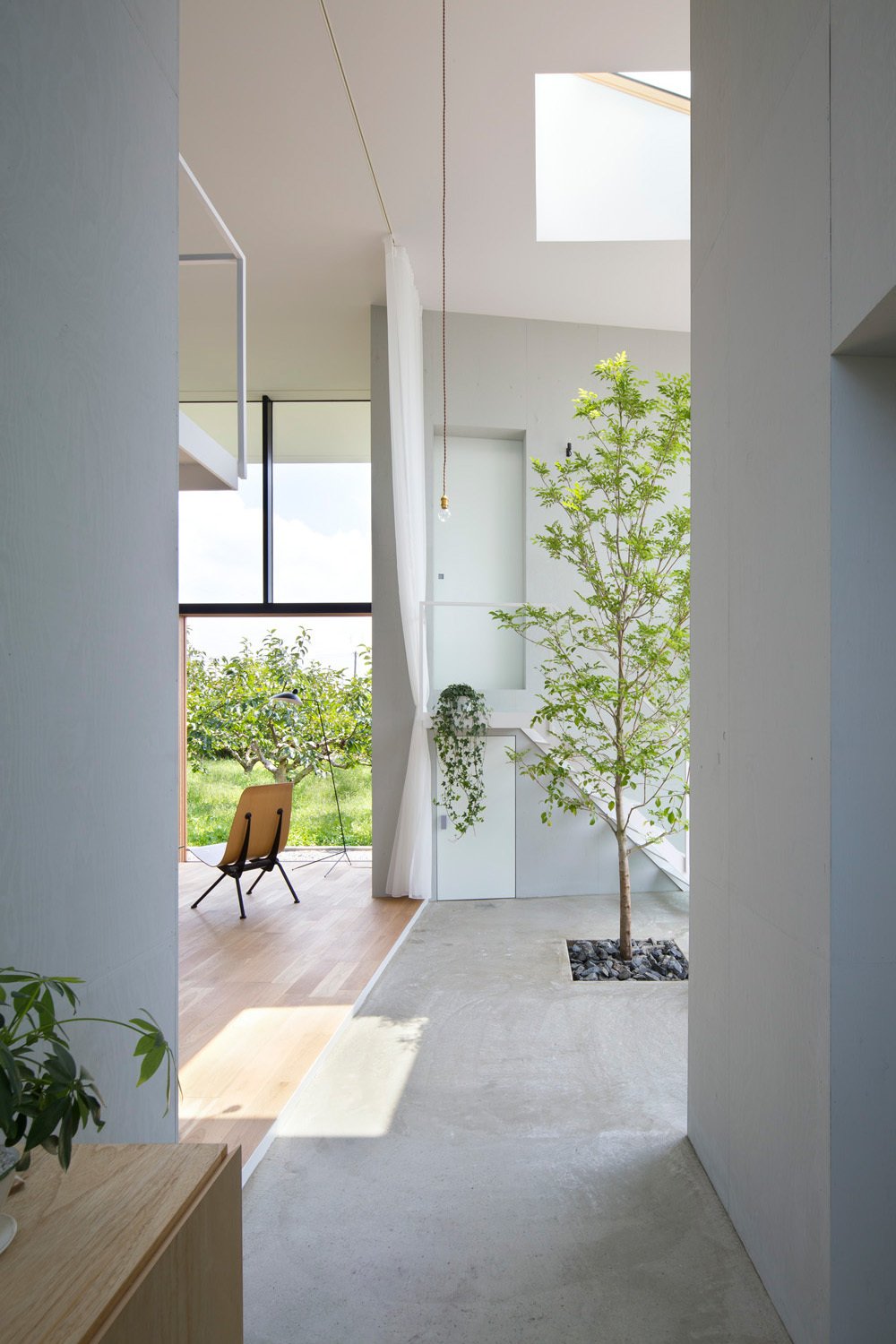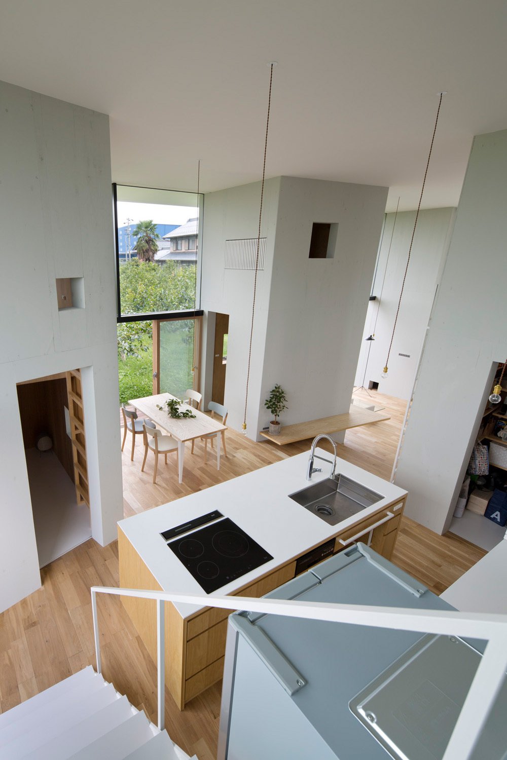 This lovely residence can be found in Ohno, Japan, and it was designed by a company called Airhouse Design Office. It was built on a picturesque site on a Japanese persimmon orchard, and so it is surrounded by numerous examples of natural vegetation that give off a sense of tranquility and privacy. The owner wanted to be able to enjoy wide open spaces as well as high ceilings, which is why the architects opted to go with a layout based on 7 thick columns and a generous rooftop.