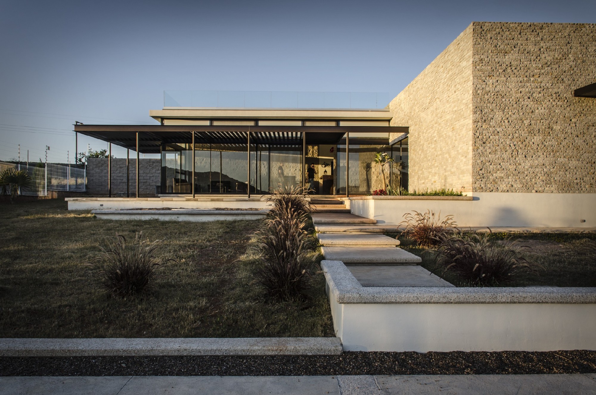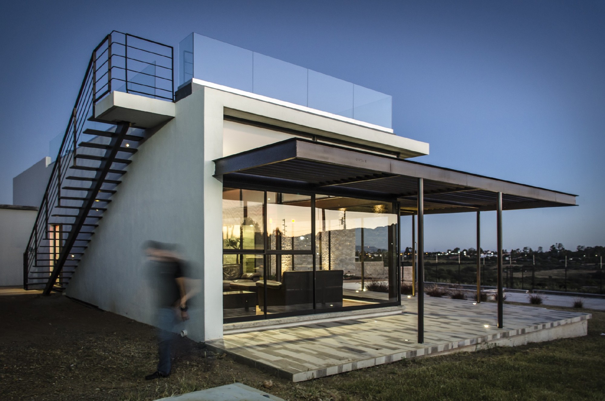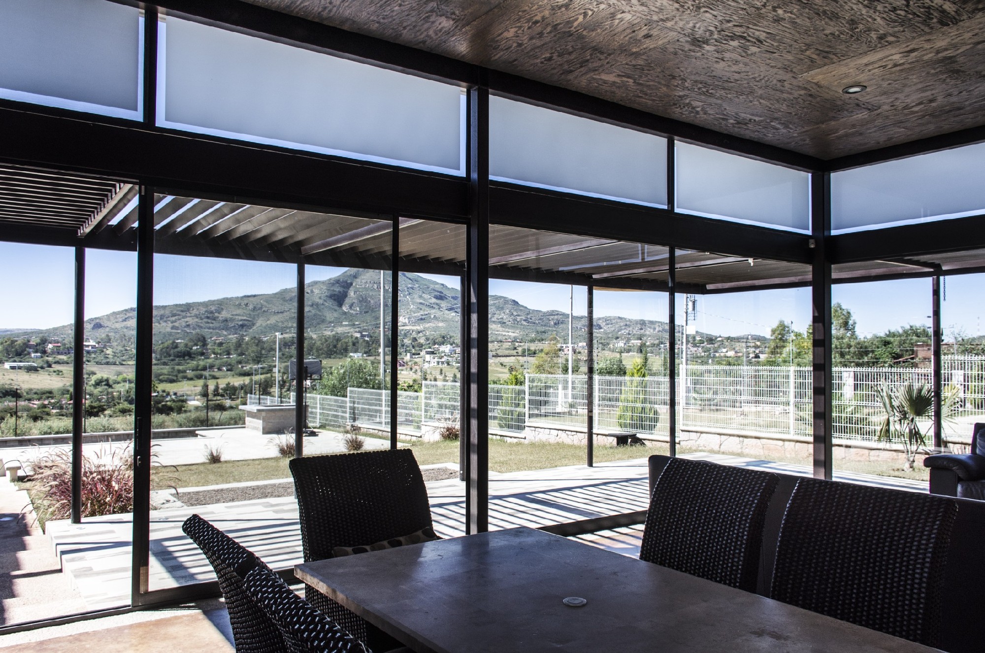 Both volumes were designed with a different structural system and different height, the intimate area has load bearing partitions, and the public area was designed with an open floor plan with ribbed slabs and slender metal posts. Over the public area, the house features an open terrace that allows panoramic views of the city and the countryside.