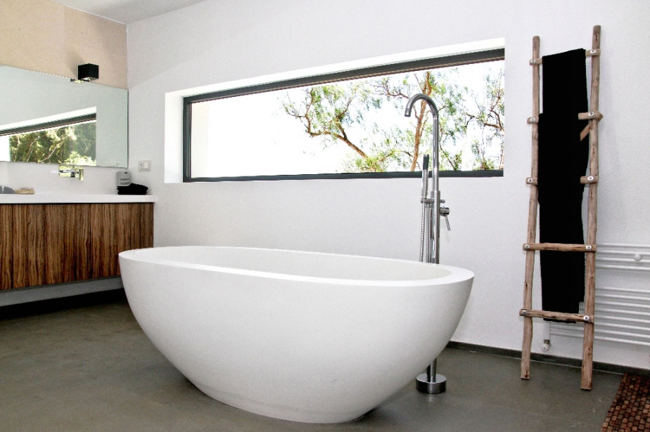 It features just one level embellished by floor-to-ceiling windows through which the light floods the entire dwelling.