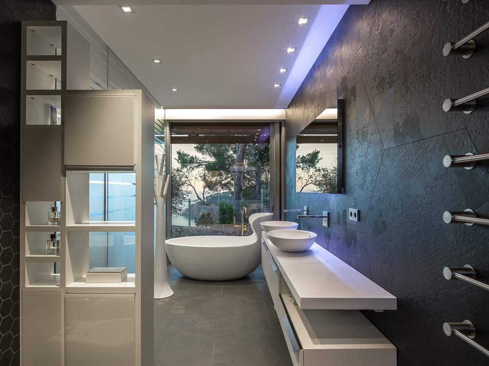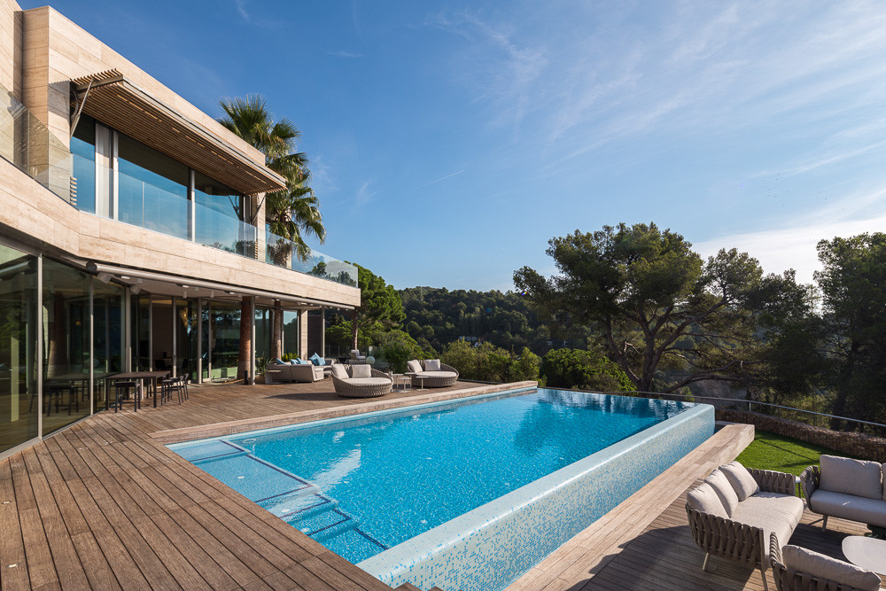 The ground floor of the Llorell House comprises the most important living spaces and benefits from a direct link to the outdoor gardens, swimming pool and terrace. The lower level is in direct contact with a grass garden and accommodates a Hammam, a Spa and a rest area. It also houses a separate apartment for the housekeeper or babysitter.
