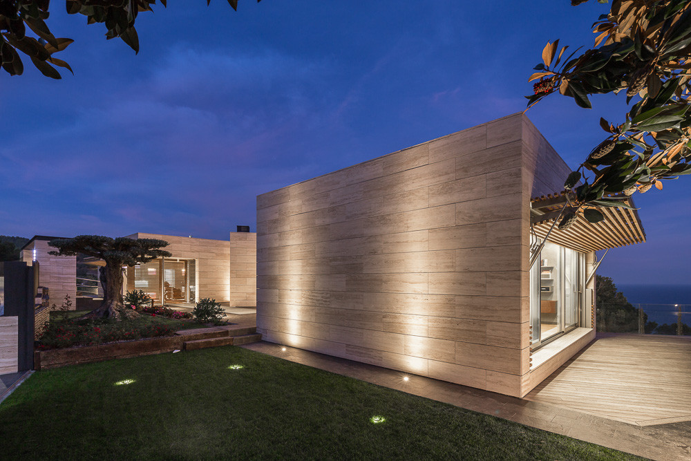 – Travertine stone of the ventilated façade for the upper volumes, that is giving a noble character to this part of the house