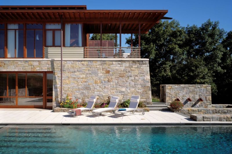 Using renewable materials, eco-friendly finishes and paints, geothermal heating, and natural cooling systems, the architects gave this home a fresh, nature-friendly vibe. The new suite imitates the original structure, having a small volume encased in a larger one. That is, a freestanding claro walnut cube which is meant to separate the bath and sleeping areas. The house is located in Fairfield County, Connecticut.