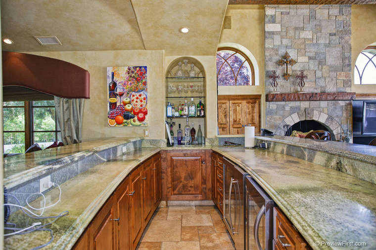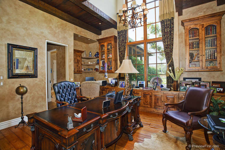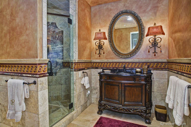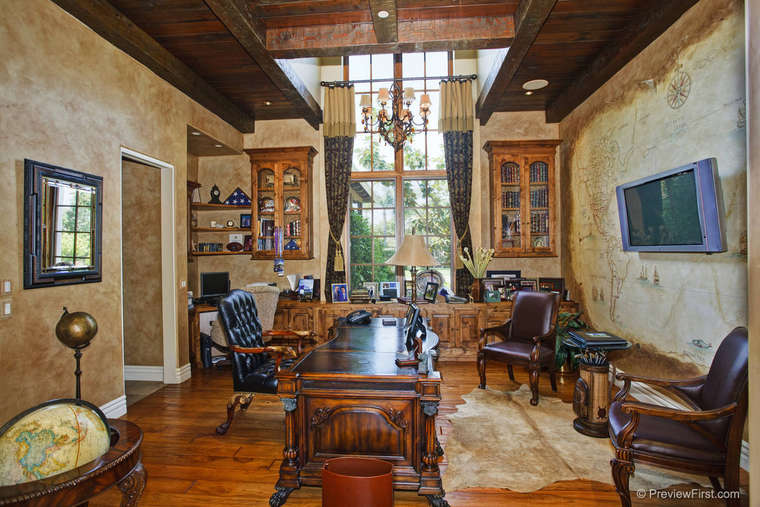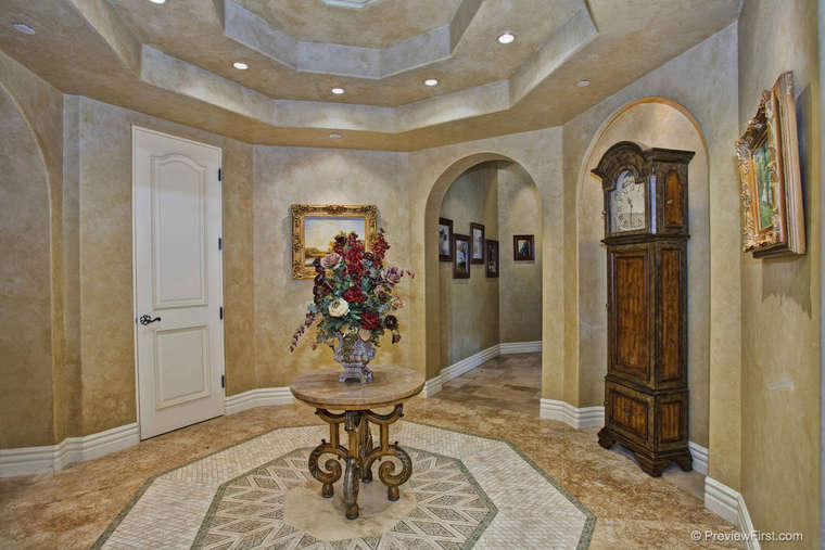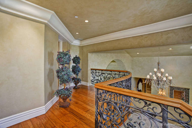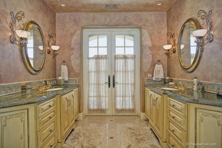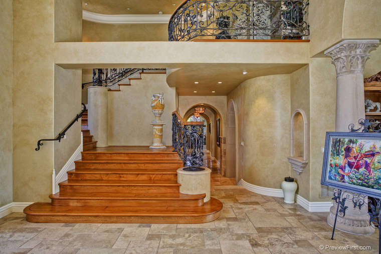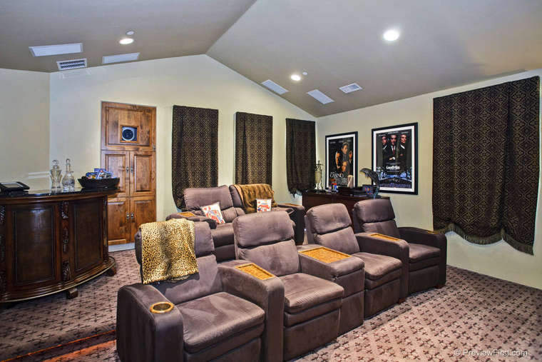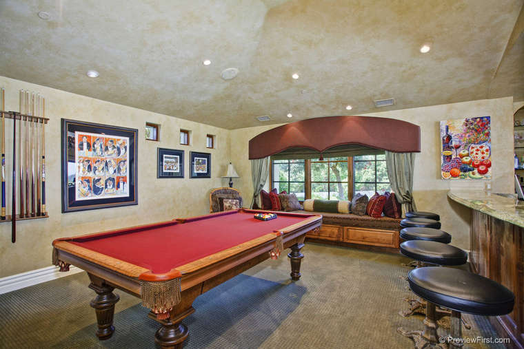 There are 6 bedrooms, 7 full bathrooms and 2 half baths in the house, plus a number of other luxe spaces, such as an over sized family room with adjacent billiard/game room, plush living and dining rooms, spectacular formal entry, office, gym, wine tasting/storage cellar, game room, and a state-of-the-art theater.