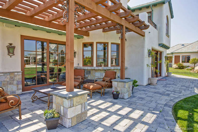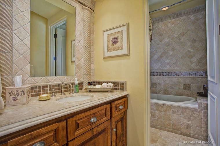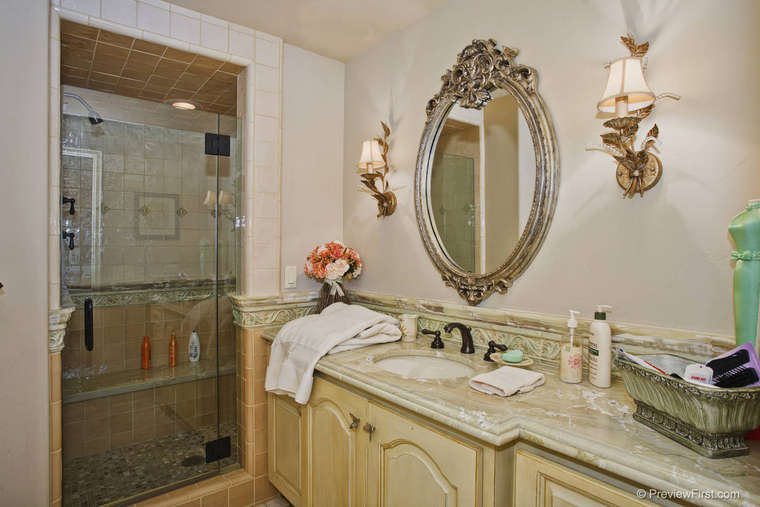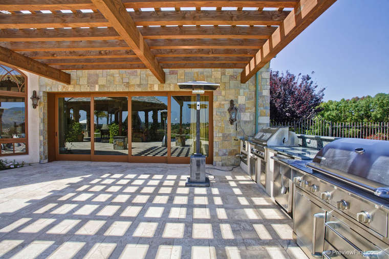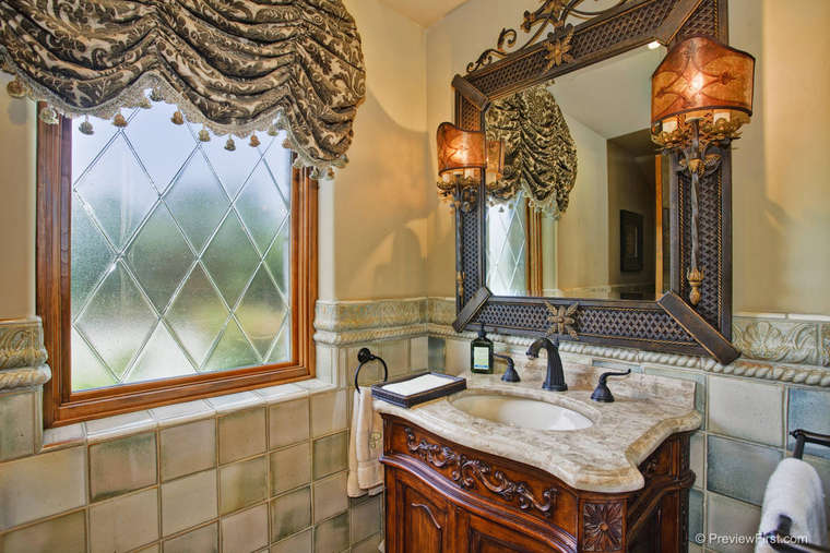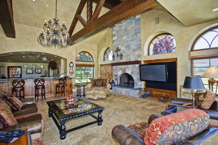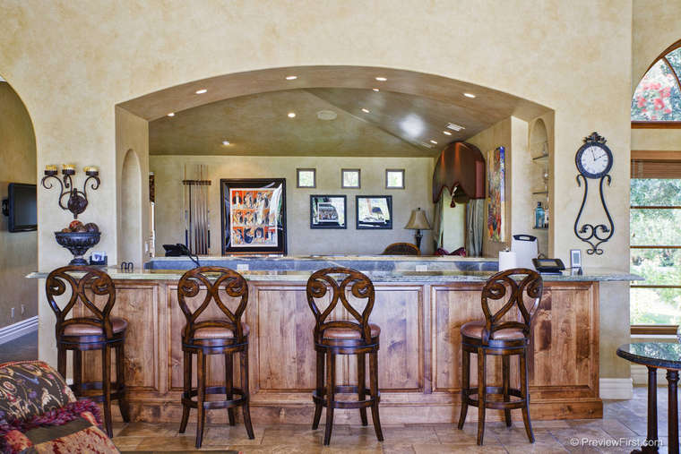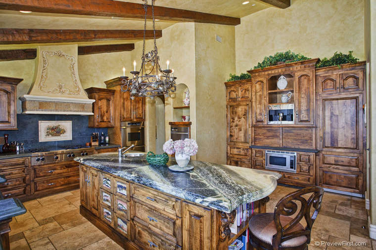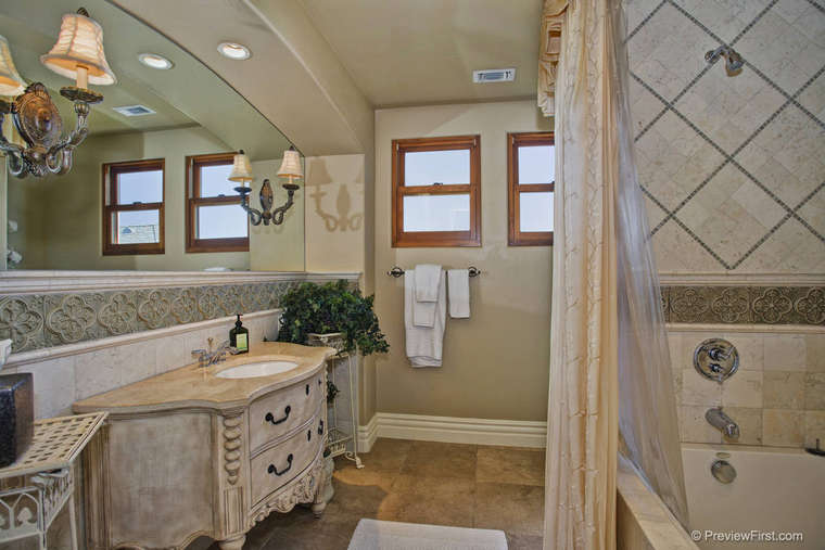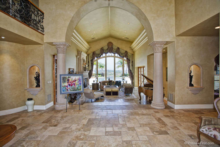 There are 6 bedrooms, 7 full bathrooms and 2 half baths in the house, plus a number of other luxe spaces, such as an over sized family room with adjacent billiard/game room, plush living and dining rooms, spectacular formal entry, office, gym, wine tasting/storage cellar, game room, and a state-of-the-art theater.