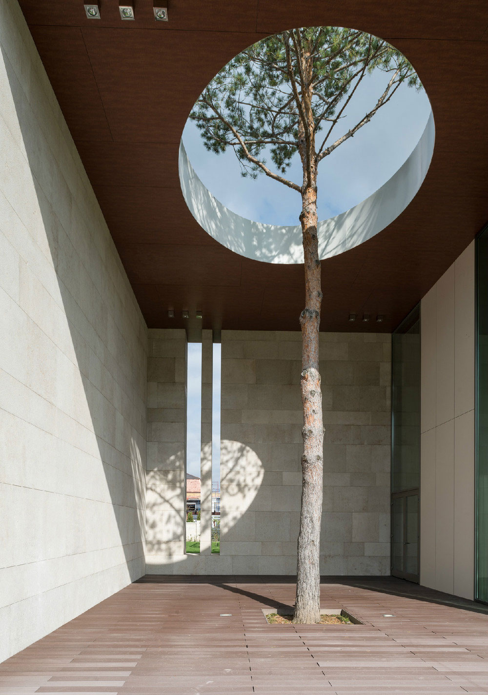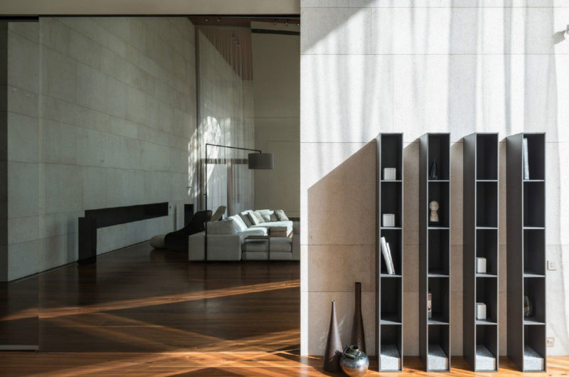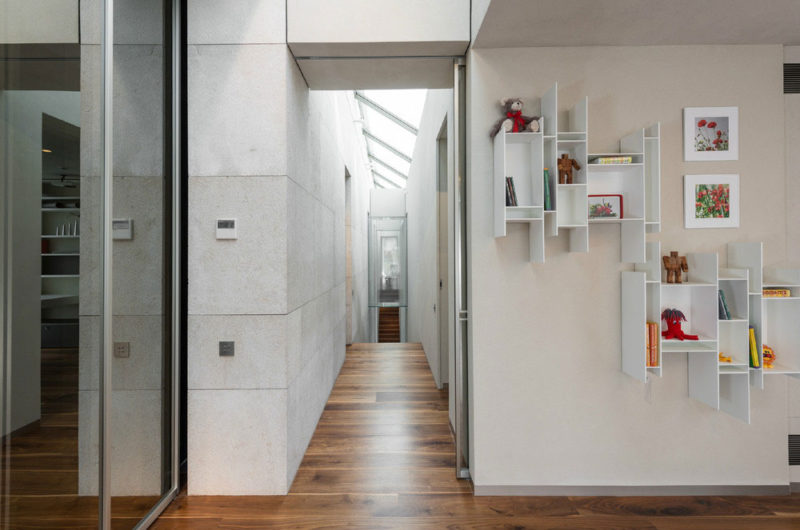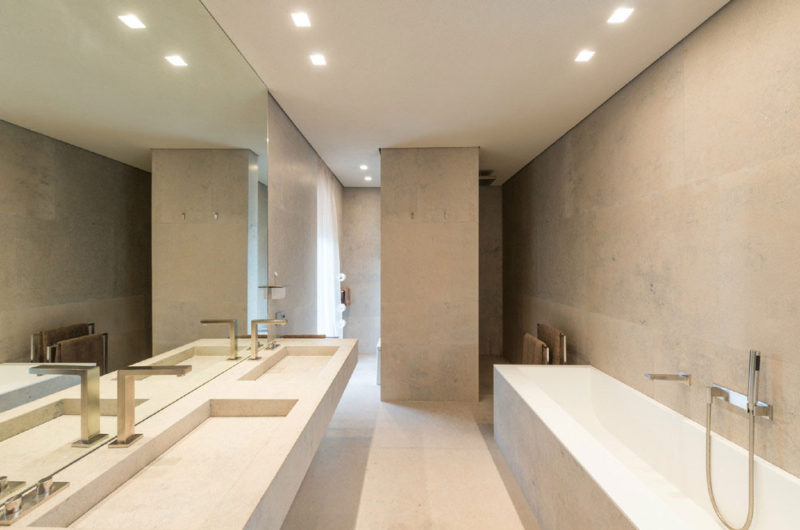 Furthermore, even though most of the main living areas feature dark brown hardwood floors for a touch of elegance, the bathroom boasts predominant tones of light and beige. Last but not least, a tree was implemented into home’s design in order to highlight a strong connection with the surrounding natural environment.