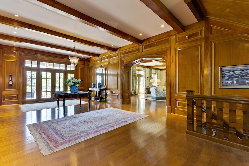 Even though the residence is spacious and imposing, it somehow manages to give off an allure of coziness thanks to the extensive use of wood throughout its interiors. Elegant and tasteful adornments are complemented by high quality heart of pine paneling in most rooms, but we should also mention the cathedral ceilings as well as the 9 stunning fireplaces. The gourmet kitchen flaunts an open plan and includes a butler’s pantry. Entertainment-wise, the owners can watch some of their favorite films in the home theater before enjoying a relaxing stroll through the gardens.