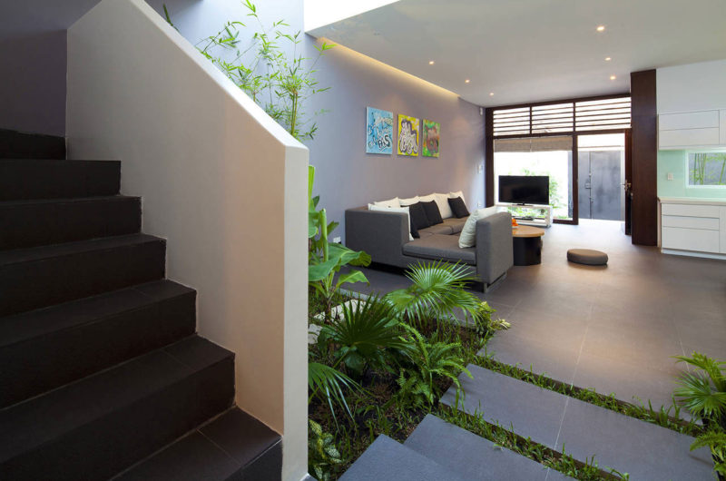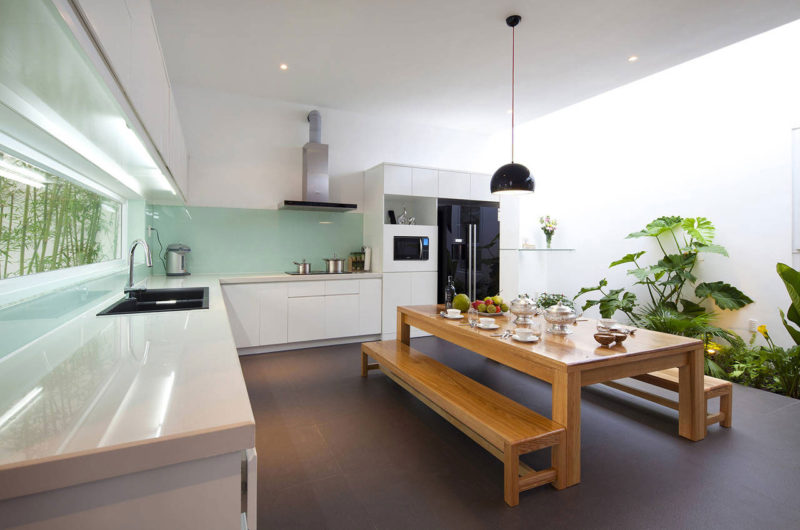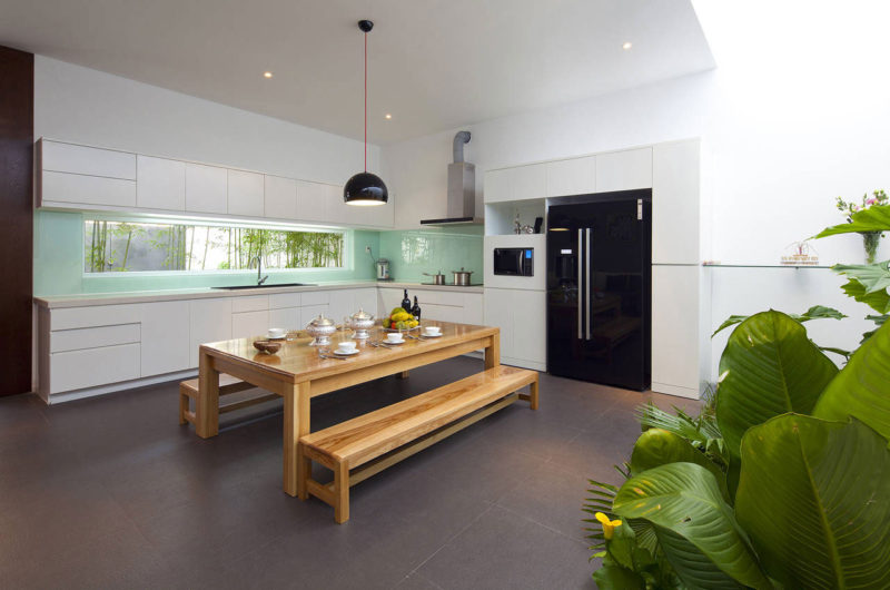 Designed by Vietnamese studio MM++ Architects, this lovely minimalist home is located in Ho Chi Minh City‘s Go Vap District, Vietnam. We absolutely love how the architects integrated nature in the entire construction, as seen in the beautiful living/dining/kitchen area.