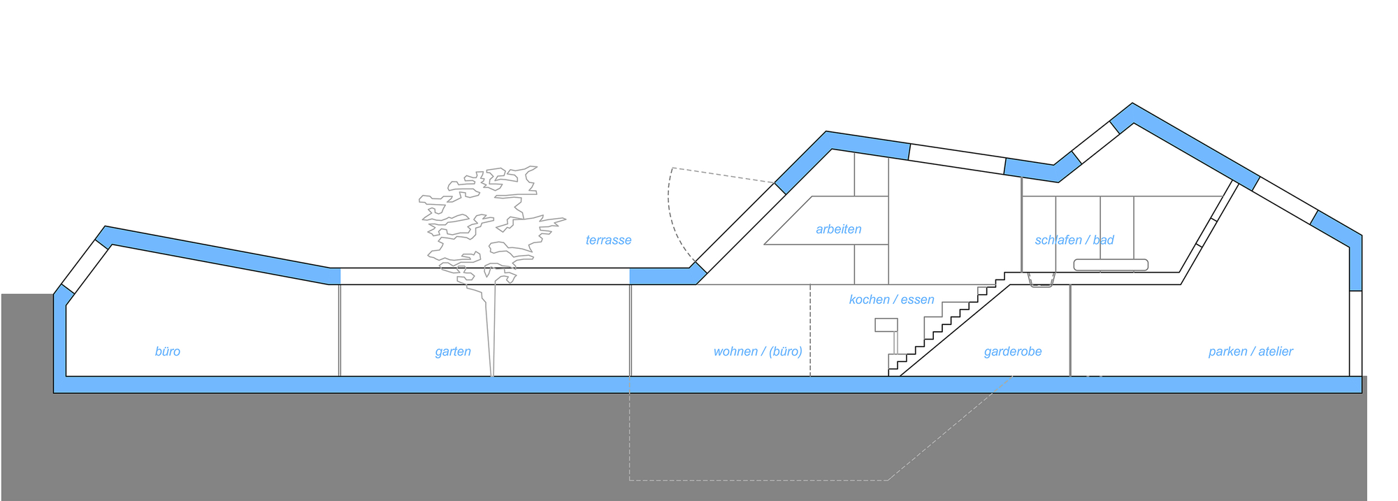 As far as sustainability is concerned, the CJ5 House is almost fully independent from outside energy sources, all thanks to a series of photovoltaic panels placed on the southern part of its roof. An air-to-water heating pump and a high quality insulation also contribute to the abode’s sustainability.