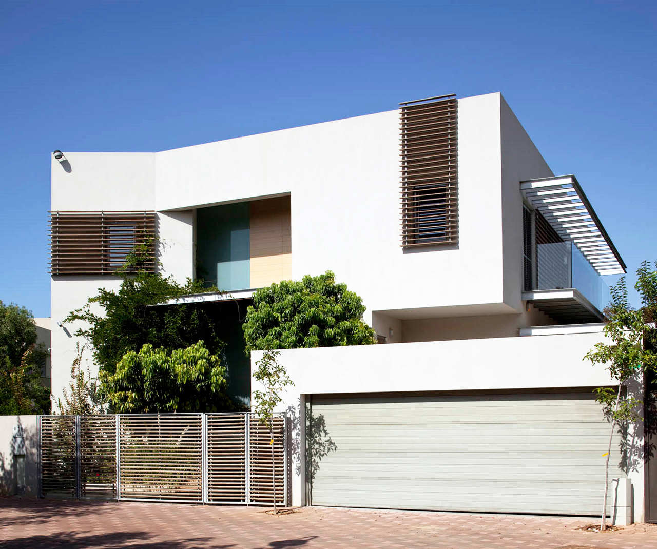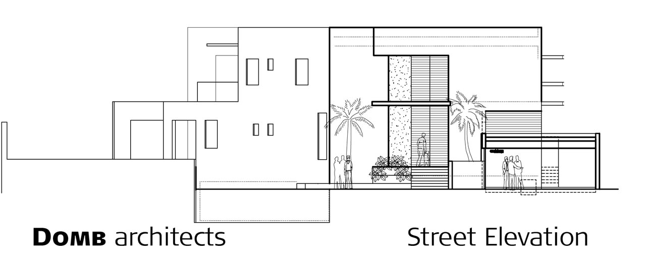 It is divided into two wings under the form of two asymmetrical boxes which are linked through open staircases. The house is hidden from the street because the front elevation is sealed.
