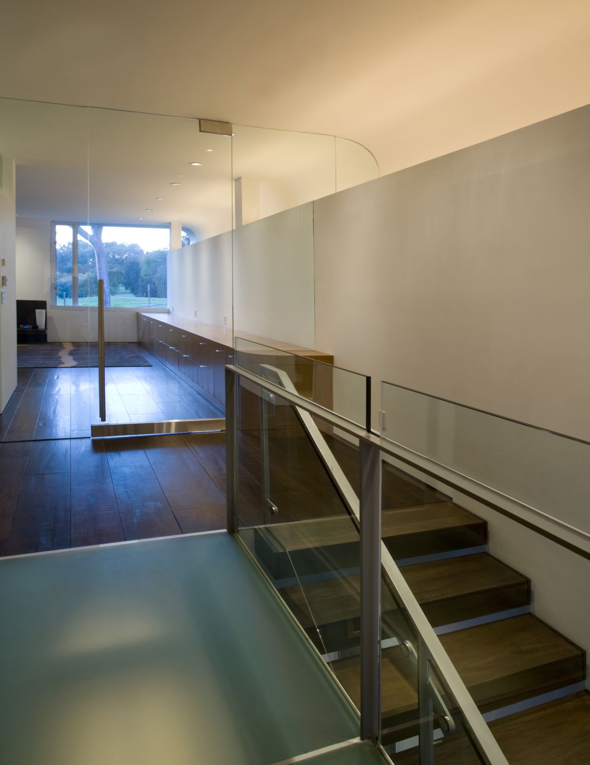 “Hovering” a large volume above the landscape eliminates the typical discontinuity between the front and rear garden areas and situates a built outdoor environment in the midst of a measurably larger feeling garden space. The blanketing roof is shaped to conduct softly gradient, reflected clerestory light while seemingly floating gently and protectively over the interior spaces.