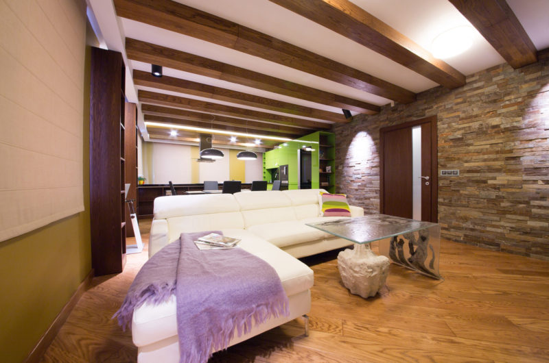The original apartment was remodeled and refurbished extensively in order to meet the needs and expectations of its new owner. As such, doors were moved, walls were built and furniture pieces were replaced by handmade ones, while the lighting arrangements, décor elements and beams were redesigned extensively in order to give off a feeling of warmth and coziness. Many of the elements present throughout the apartment were designed by M2 Design Studio’s experts, including the special night lamps, the wall panels and even the coffee table.