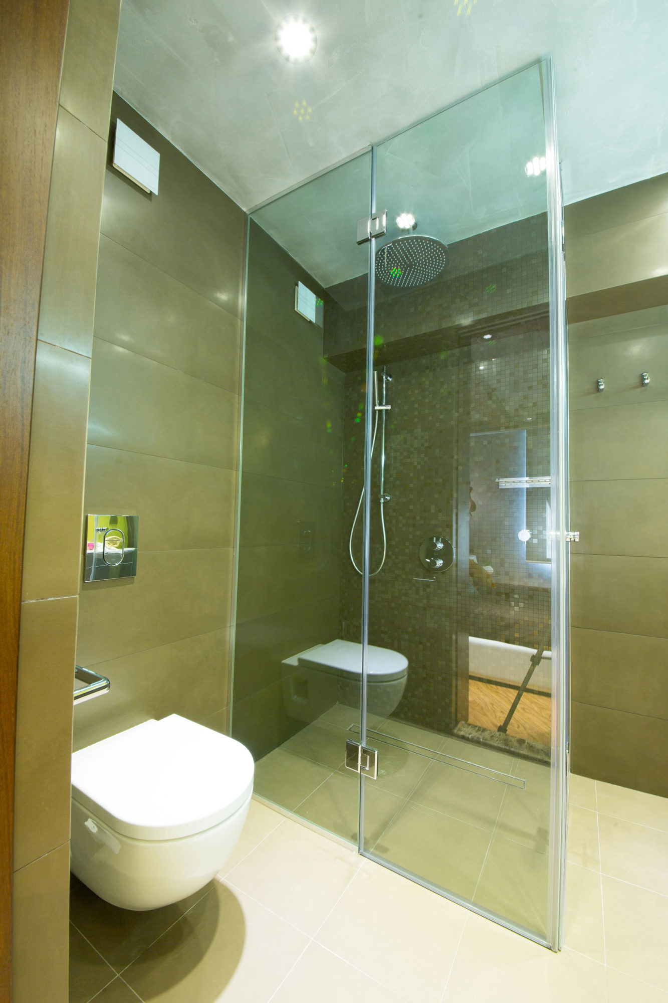 First we cleared the idea of how the apartment should be optimal organized as living areas. We planned what reconstructions should be made. We build new walls, moved doors to new place and etc. Made corrections of the electrical system so it could meet the new needs of the apartment. Meanwhile we had our interior project approved. Our main point was to have handmade furnitures, lamps, decorative object, beams, natural materials and etc. Which would bring the cozy and warm feeling of the apartment. We designed many objects specifically for this project. We designed the wall panels with circle motifs, the night lamps “Sea life”. We designed the coffee table made from a stone plastic and bend art glass made from a local company. The “Lace” wall panels and mirror were inspired from an old flower lace I found made many years ago from my grandmother. We ordered on carving artist to make by our idea wood-carving details for the kitchen island and tv cabinet. The main furniture as wardrobes, kitchen, tv cabinet, book shelves, desks were made from our designs from a local companies. The dining table, chairs, beds and night tables were imported from well known Italian furniture brands.