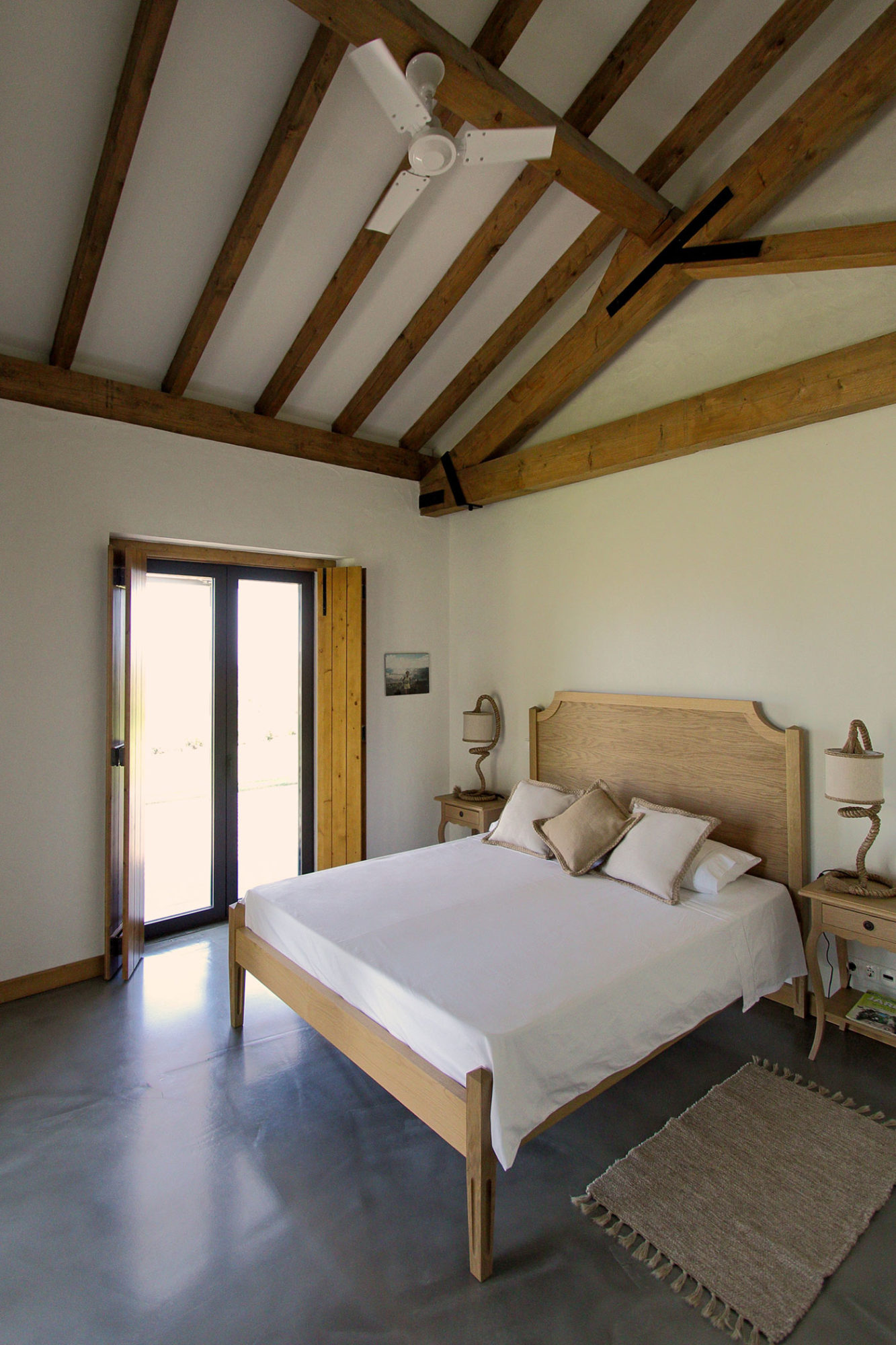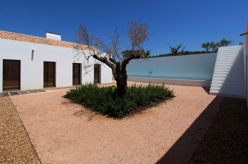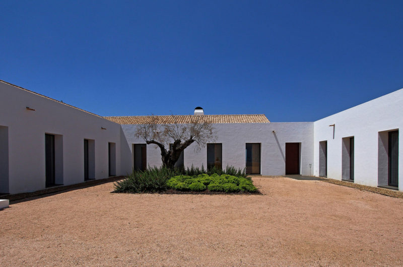Speaking of its surroundings, this home is nestled on a 123-acre agricultural property that includes olive trees, vineyards as well as picture-perfect hills and plains. As we mentioned before, the home features a distinct U shaped layout, which means that it is divided into 3 main sections. The southern part of the abode contains the 4 bedrooms, while the opposite side to the north includes the service areas, a kitchen and a small dining room. The central part of the abode faces west and involves the entertainment and social areas such as the living room and the dining room. Furthermore, this U-shaped design facilitated the creation of a private central courtyard, which ensures quick and easy access to all of the 3 separate wings.