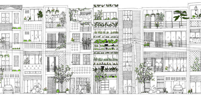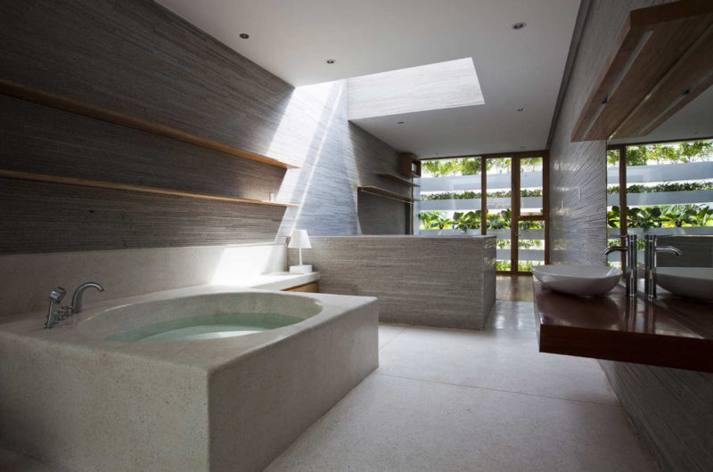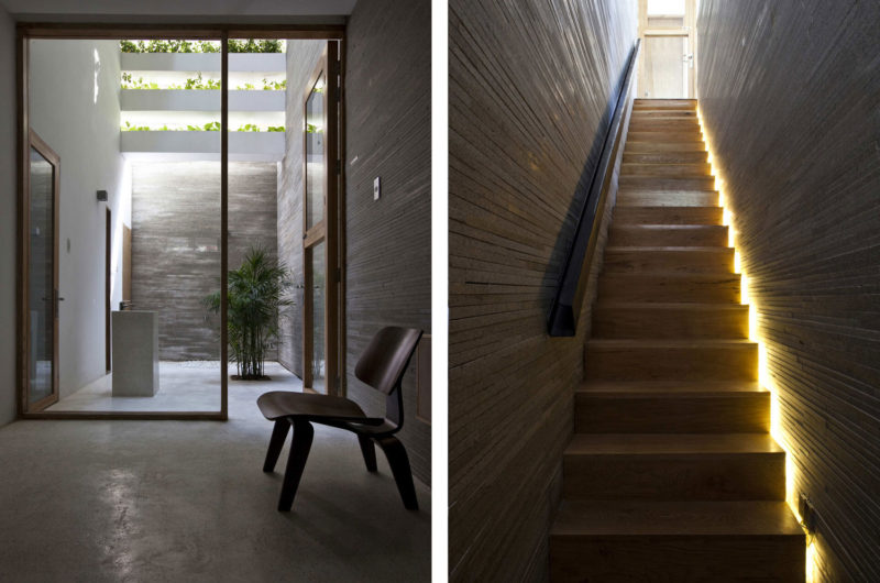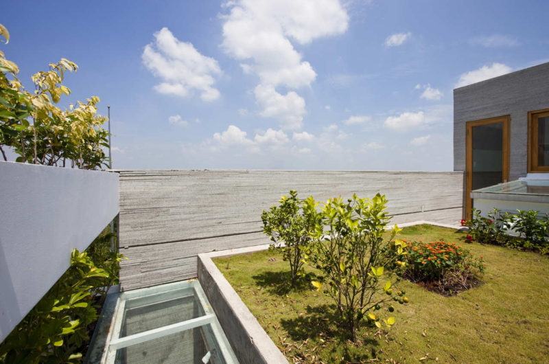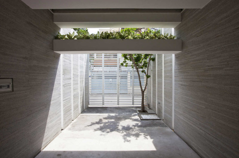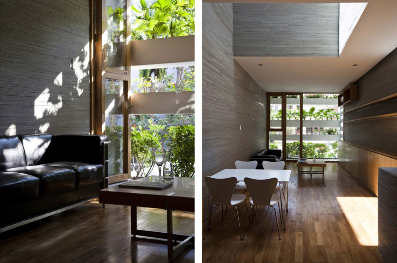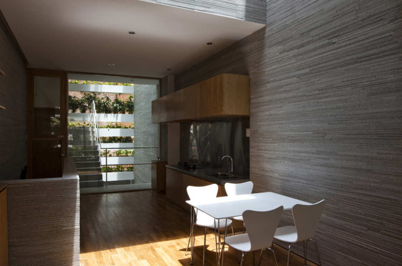 Saigon, a beautiful Vietnamese city filled with flower pots, inspired Vo Trong Nghia Studio to create the Stacking Green project. This is a four-story residence designed for a thirty-years-old couple and their mother. It is a tube house with the front and back facades made of layers of concrete planters, adjusted at different heights depending on what type of plants they hold. The greenery is automatically irrigated through the pipes inside the planters.