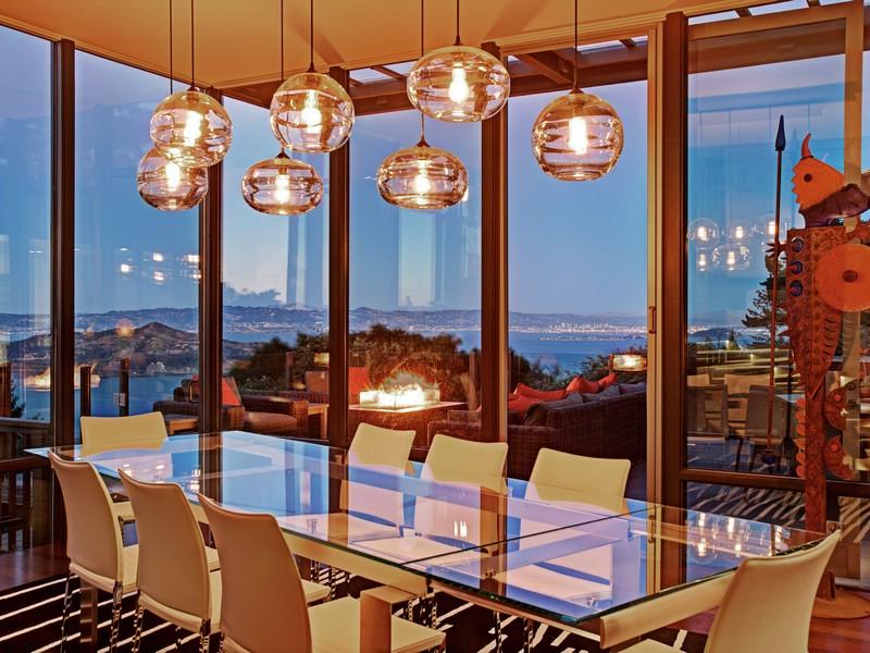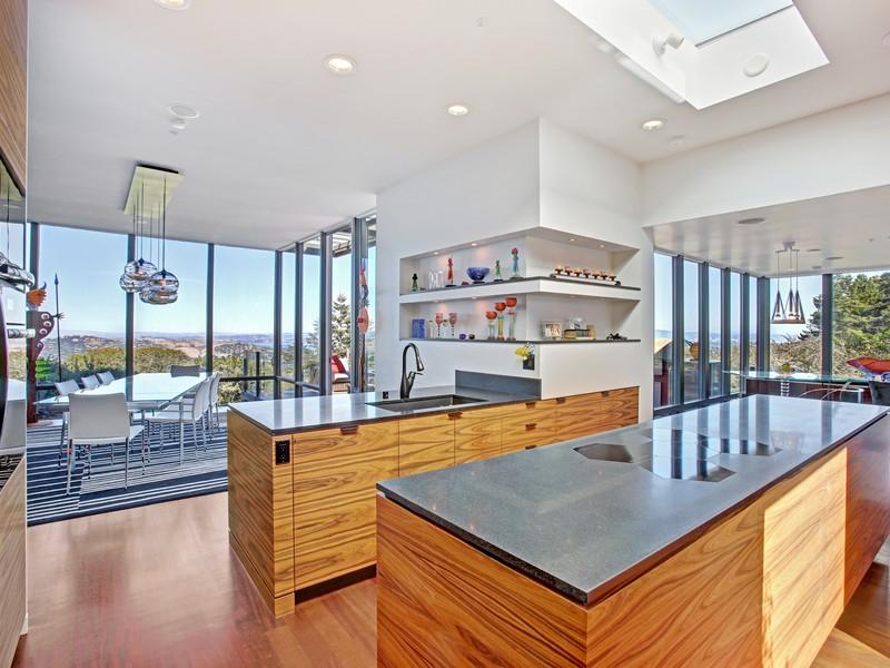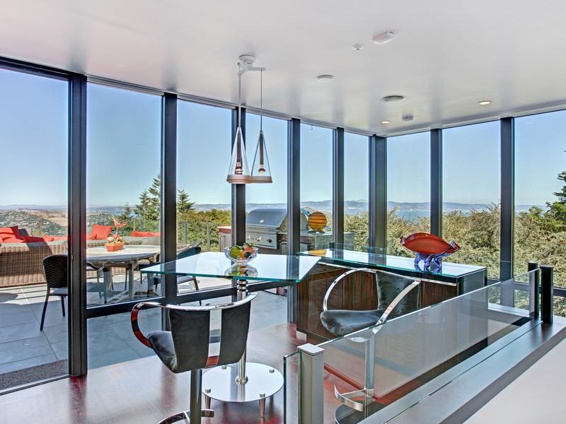 The dining area too affords superb vistas of Richardson Bay, as it opens to the outdoor patio. Transition from this space to the kitchen area is smooth, and this enhances the feeling of openness and freedom that this residence offers. The price for all this beauty is $5,380,000.