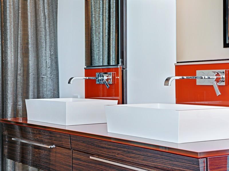 Some of its best new features include 9-zone hydronic heating system, dramatic glass walls, top-of-the-line kitchen appliances, modern fireplaces, and excellent living/entertaining outdoor space with glass fire pit, stainless steel barbeque, and inviting sitting area. The house has a total of 4,482 square feet of space, but it seems much bigger than that, thanks to a number of carefully chosen architectural and design elements.