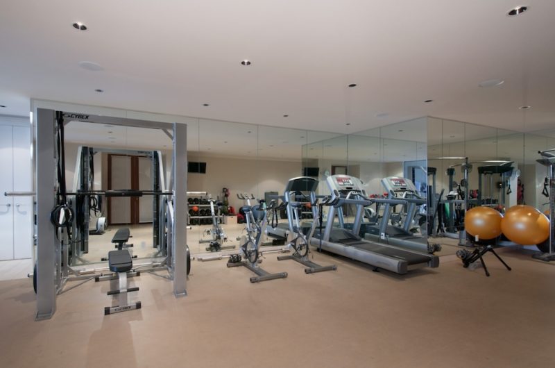 There is also a stunning swimming pool that stands ready to offer endless opportunities for relaxation, while the gymnasium features all the necessary equipment in order to ensure high quality workout sessions. The 2 levels of the residence are connected via a spiraling staircase that flaunts glass railing.