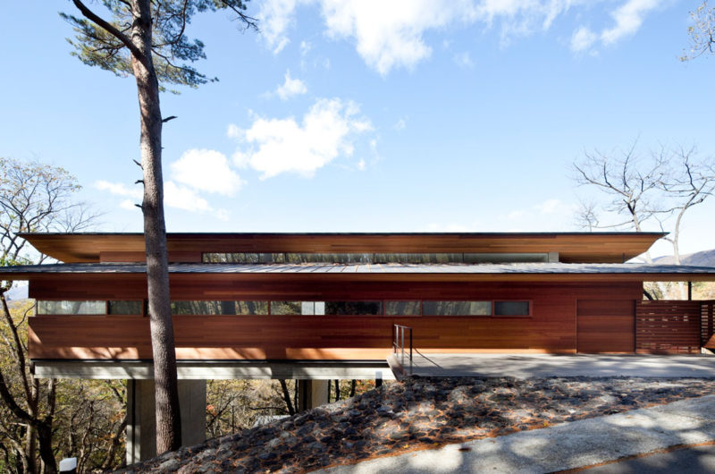Every house has its own story and this contemporary home speaks through its incredible location. A huge tree stretching is designed to protect the home like a guardian, offering in the same time a breathtaking view and also plenty of fresh air. Designed by Kidosaki Architects Studio this exquisite home was built on a site in AsamayamaTsukudeiwanami, Shinshiro, Aichi Prefecture, Japan. Placed on multiple pillars, the interior is very little accessorized maintaining a simple, fine and effective aspect. If Mother Nature amazes all the time by its simplicity and mystery, this spectacular home is closely related to it.