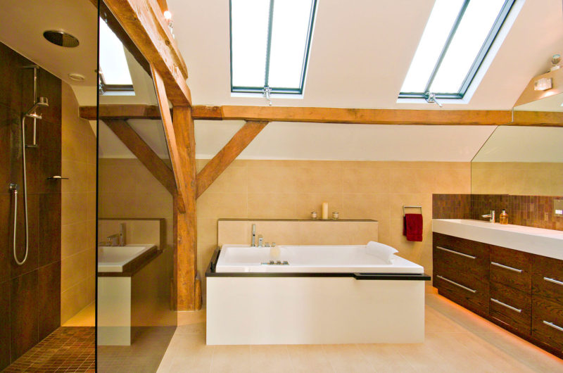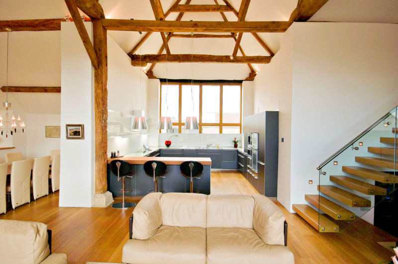 Because the roof collapsed, Carpenter Oak & Woodland were employed to repair it by using traditional techniques that complement the contemporary modern lines.