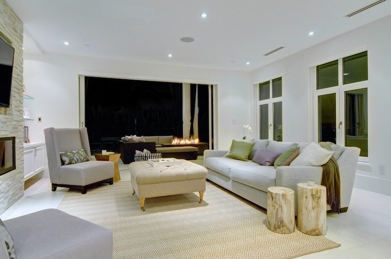 Due to the 12′ wide glass sliding door that makes the link with the large outdoor living area, the great room was transformed into a perfect place for entertaining and relaxation.