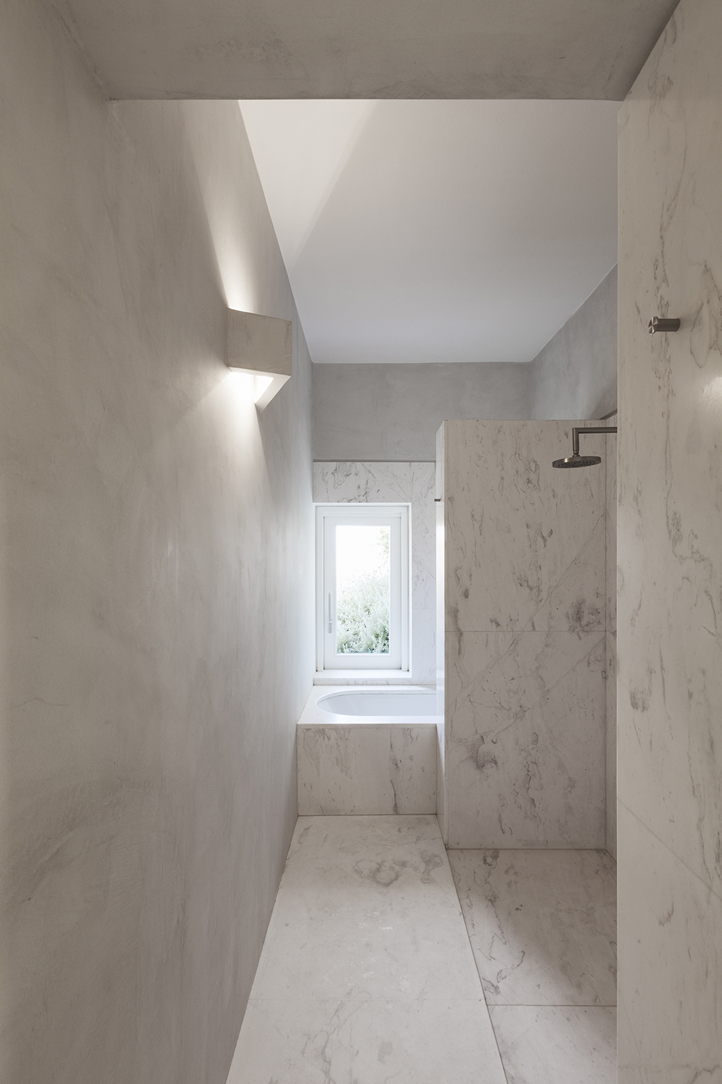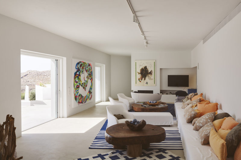 In the Greek regulations, volumes can’t exceed ten meters long and this rule dictates the composition rhythm, always related to the interior spaces. All of them have distinct landscape framing and particularly varied in the amount and intensity of light. Based on a large program we decided to divide the house in two levels: the entrance level being the main house and the lower level the guesthouse, service and staff areas. The house was built following the local construction tradition and the island regulations – those aspects were crucial to the house expression.