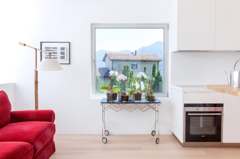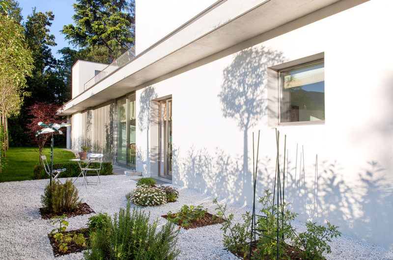 The G family home in Sorengo, on the edge of Lugano in Ticino, is the category of villa that Palladio-1 put forward as a contrast with the town house. The site, a long narrow strip of land on a steep slope, is part of a hilly area, bordered on its short sides by a private road and another property.