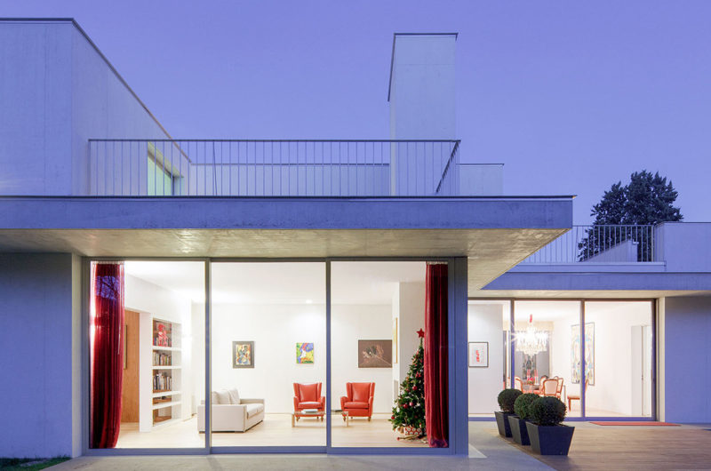 The spaces are articulated according to the client’s precise requests, such as the fact that all the main living spaces on the ground floor, with a second floor devoted only to a games room, guest area and the solarium with a heated pool. As a house, it is neither too large nor too small. There is room in it for all that is needed for each member of the family to live life autonomously.
