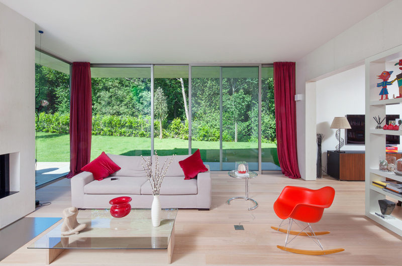 The owner’s requirements dictated the implementation of the main living areas on the ground floor, while the second floor should feature a guest area, a solarium with a heated pool and a games room. The architects managed to fulfill these requirements to the letter thanks to a contemporary, well-thought design. In order to ensure picture-perfect panoramas of the nearby lake and mountains, SCAPE’s experts decided to raise the ground floor by 9.8 feet. On the outside, Villa G boasts local stone cladding as well as opaque aluminum fittings that contribute to a contemporary, clean look.