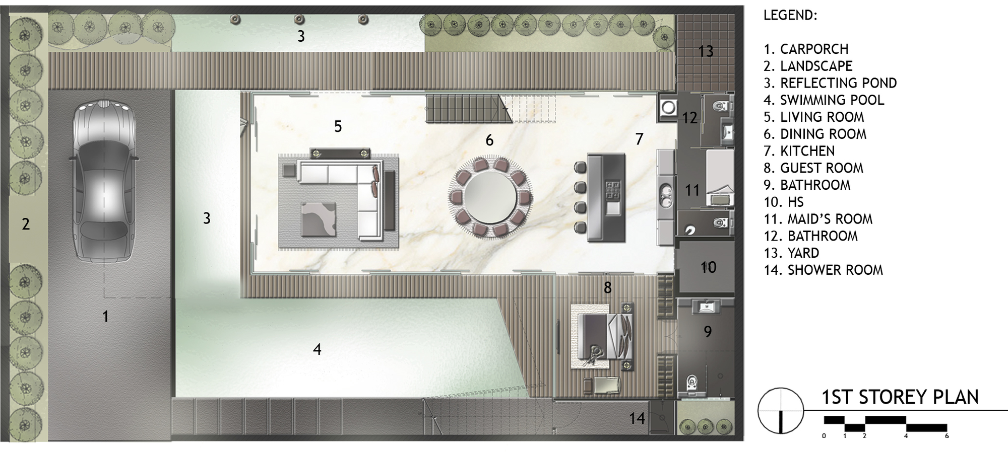 In order to ensure that all living spaces would be linked efficiently and harmoniously, the designers implemented a continuous RC slab that features a serpentine design. The slab also helps blur the boundaries between the indoors and outdoors. Flaunting 3 floors in total, the OOI House includes a lavish master bedroom on its top floor as well as another bedroom on its second floor. The ground floor is reserved for entertainment and socialization.