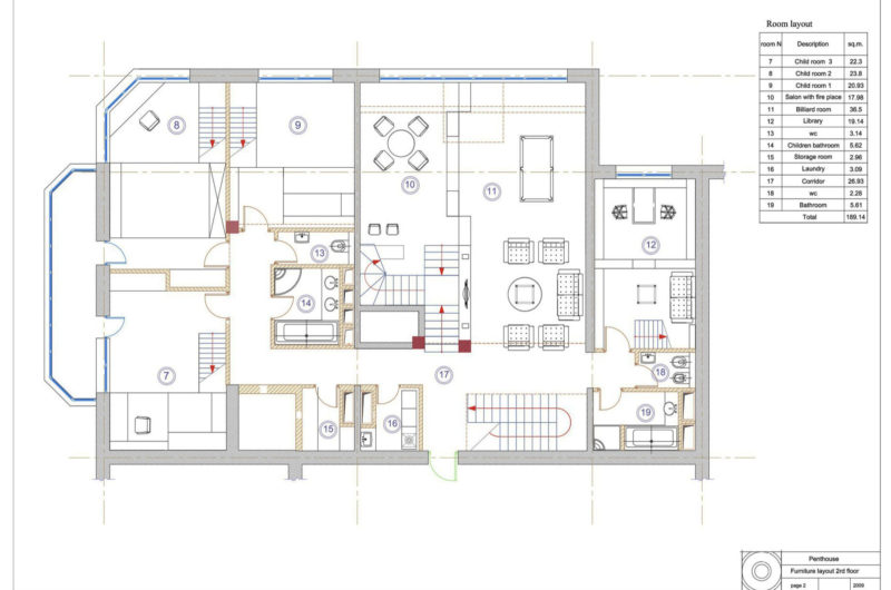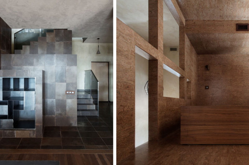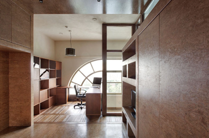 The living room is on the lower part of the second level, and the upper part was chosen to incorporate a bathroom, a study room and a bedroom. A glass dome separates the study from the bedroom, providing plenty of natural light. The children’s rooms, the nursery room and the library each received extra floor space, and by the end, the original duplex was transformed into a four-level apartment boasting 348 square meters (3,745 sq. ft.)of living space, which is 90 square meters (969 sq. ft.) more that the original.