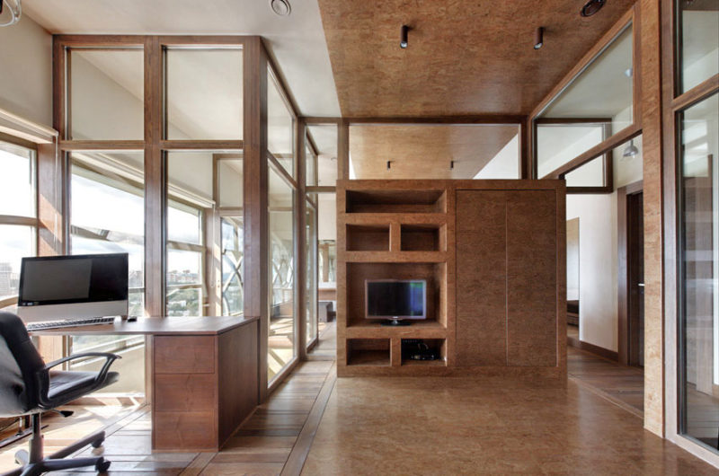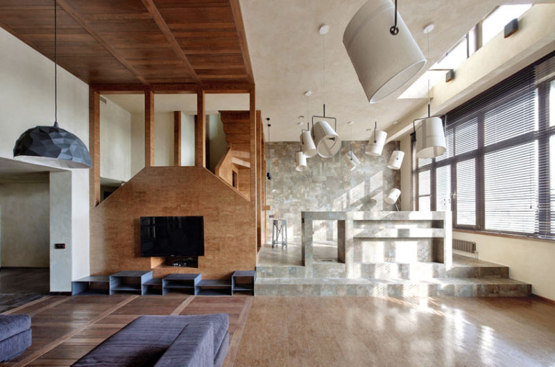 This Multi-Level Apartment was designed by Peter Kostelov, it can be found in Moscow, Russia, and it was originally composed of two levels measuring a total of 258 square meters (2,777 sq. ft.), 69 (743) for the first level and 189 (2,034) for the second. Considering the fact that the second level featured ceiling heights varying from 3 to 8 meters (10 to 26 ft.), a third and a fourth level could easily be added, taking full advantage of the extra vertical space.