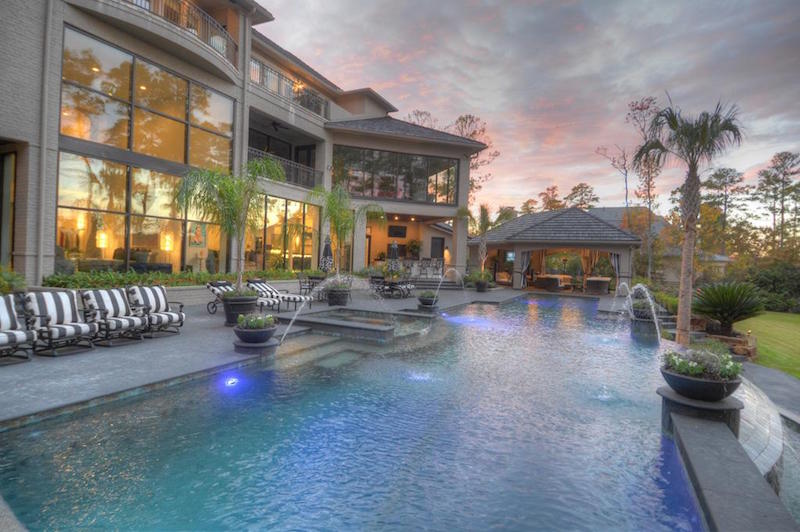 Originally built in 2005, the Private Sanctuary was redesigned in 2013 and it now represents one of the most noteworthy homes in The Woodlands, Texas, USA. Once inside, the residents and their guests are greeted by a sublime entryway that features tall water elements, floor-to-ceiling glass walls and elegant Swarovski chandeliers.
