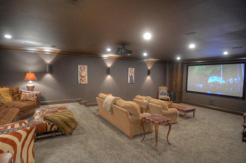 The private spaces include 9 bedrooms, 10 full bathrooms and 3 half ones, while the public ones comprise two kitchens, an entertainment room, a spa, a theater, a tasting room and a gymnasium. The master retreat flaunts a massive closet that spreads on three stories and features a floating staircase. Outside, we find a covered veranda in close proximity to a swimming pool that boasts a water wall. The pool and the veranda face a nearby tranquil lake and a beautiful golf course.