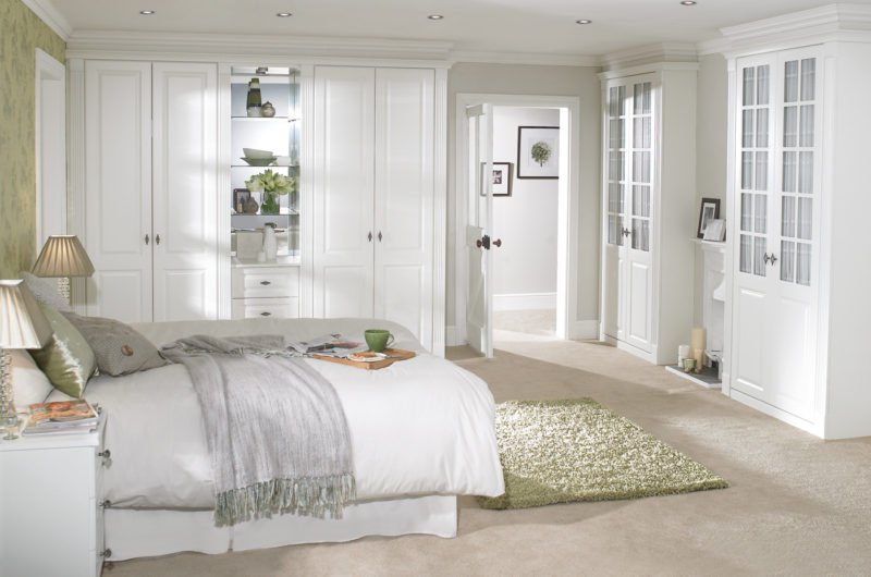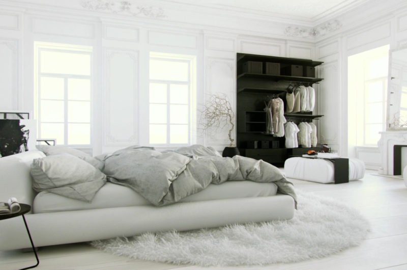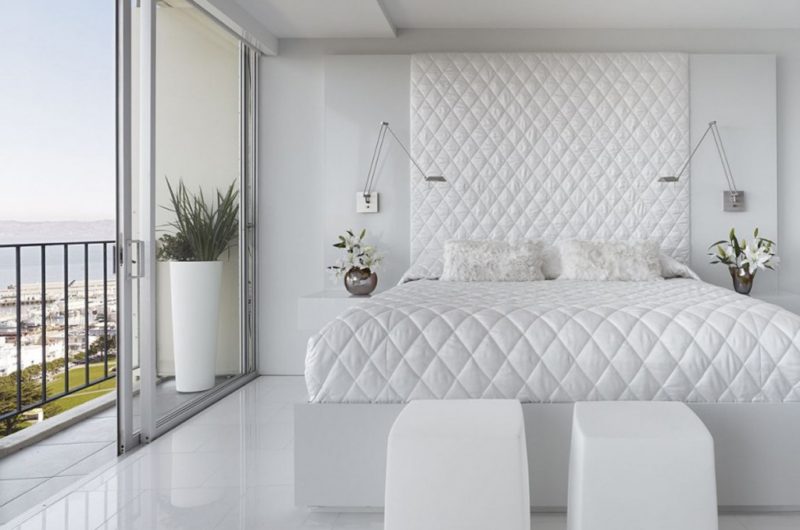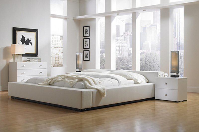 A white bedroom will always seem more spacious than the one decorated with dark furniture and colorful accessories. White furniture makes the bedroom look larger and more airy.