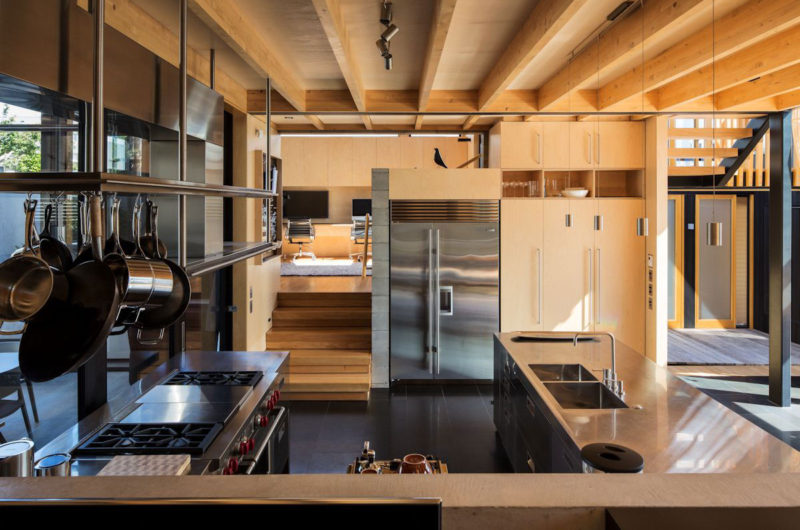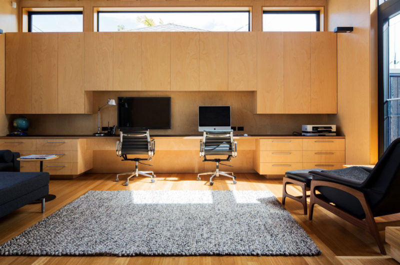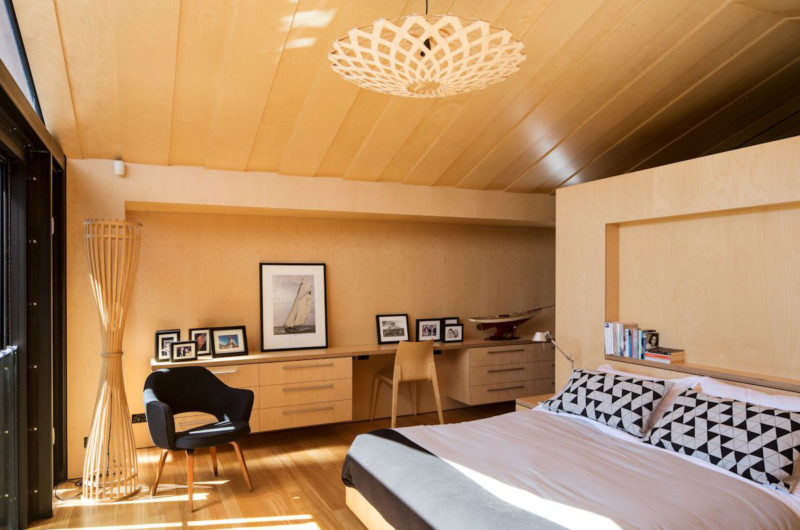 On the outside, the Boatsheds home might not make passersby turn their heads but on the inside things are completely different. The interior design is based on plenty of timber elements that help create an atmosphere of warmth and comfort. The furnishings are modern and contrast nicely with the warm shades of the timber since they feature colder tones of gray, black, white and sometimes green.