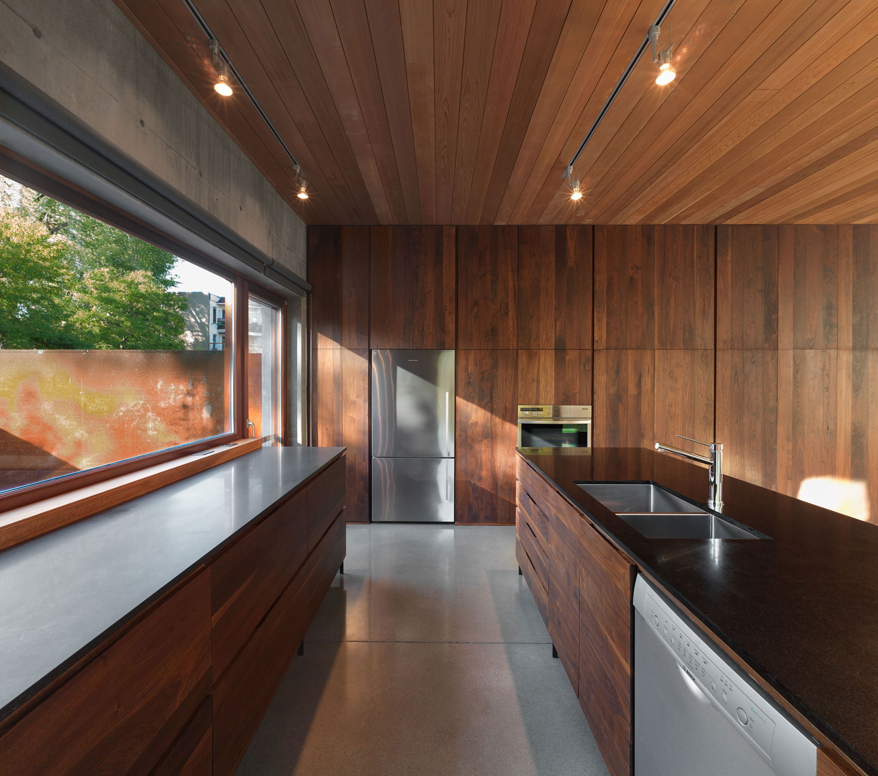 The Beaumont House is a dazzling home in Montreal, Canada, designed by Henri Cleinge. The elegant effect of the interior and the exterior is given by the mix of wood and concrete, also this fusion adding a sense of massiveness to the entire house.